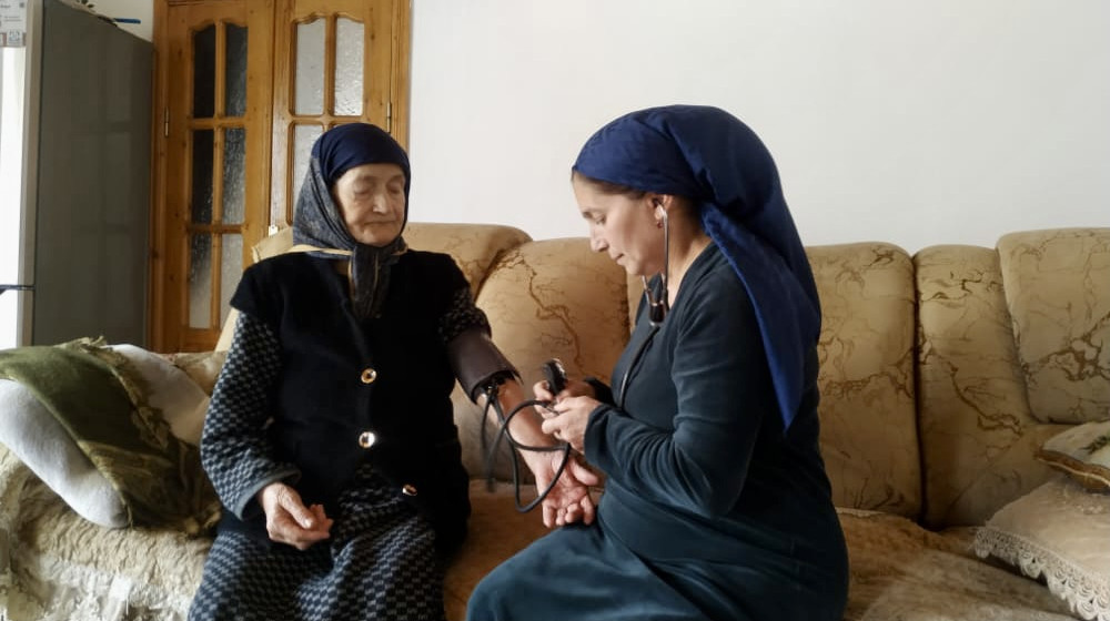 Социальные работники с .Бамматюрт Байбатырова А.В. и Минтулаева Т.С. оказывают социально-бытовые и социально-медицинские услуги на дому.