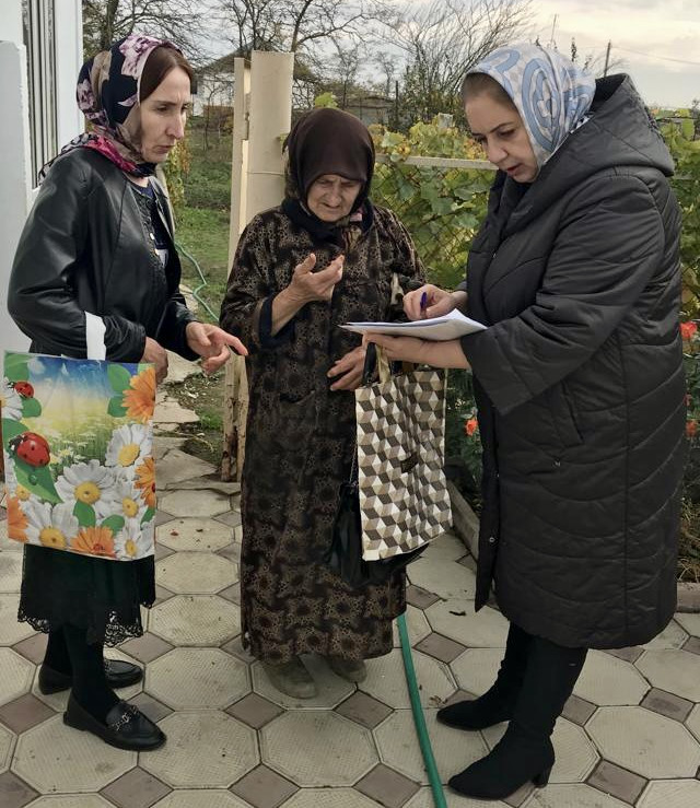 11.11.2022г ГБУ РД КЦСОН в МО "Хасавюртовский район" заведующая отделением 13 Устарханова А.М. Выездной день в с. Садовое совместно с социальной работницей Солтамутовой А.Н. провела обход подопечных на качество оказание социальных услуг, гражданам пожилого возраста и инвалидов.