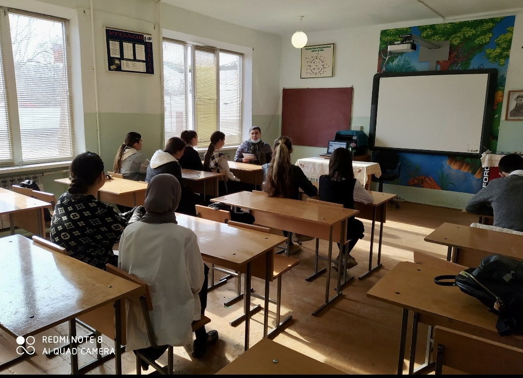 11.11.2022г. Психолог Байрашова М.Д. отделение СОД и СД ГБУ РД КЦСОН в МО "Хасавюртовкий район" Посетила Ботаюртовскую СОШ, где провела беседу с учащимися 9 класса на тему: "Что такое толерантная личность". Цель: научить детей без конфликтному решению спорных вопросов, воспитывать чуткость, терпимость к окружающим людям.