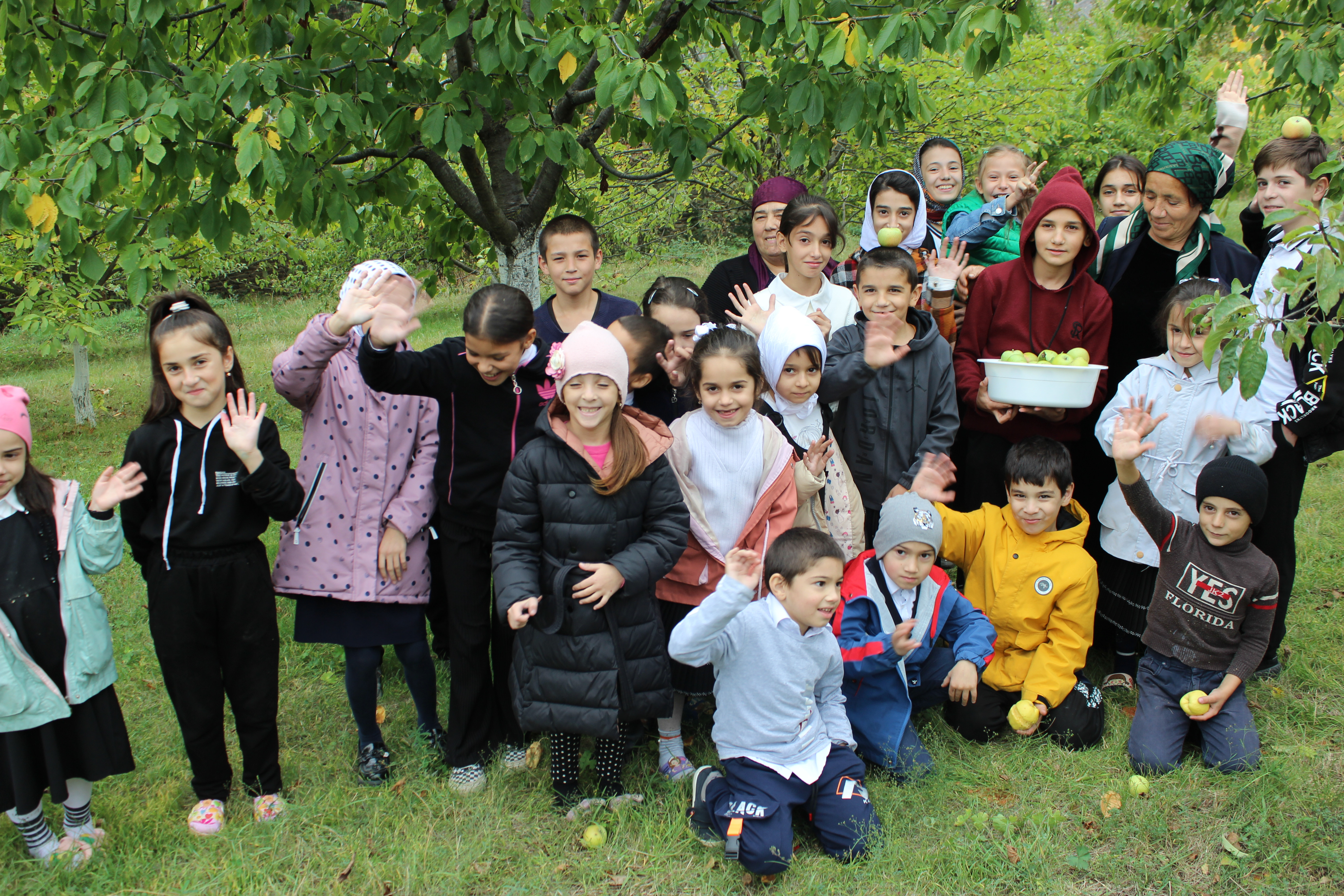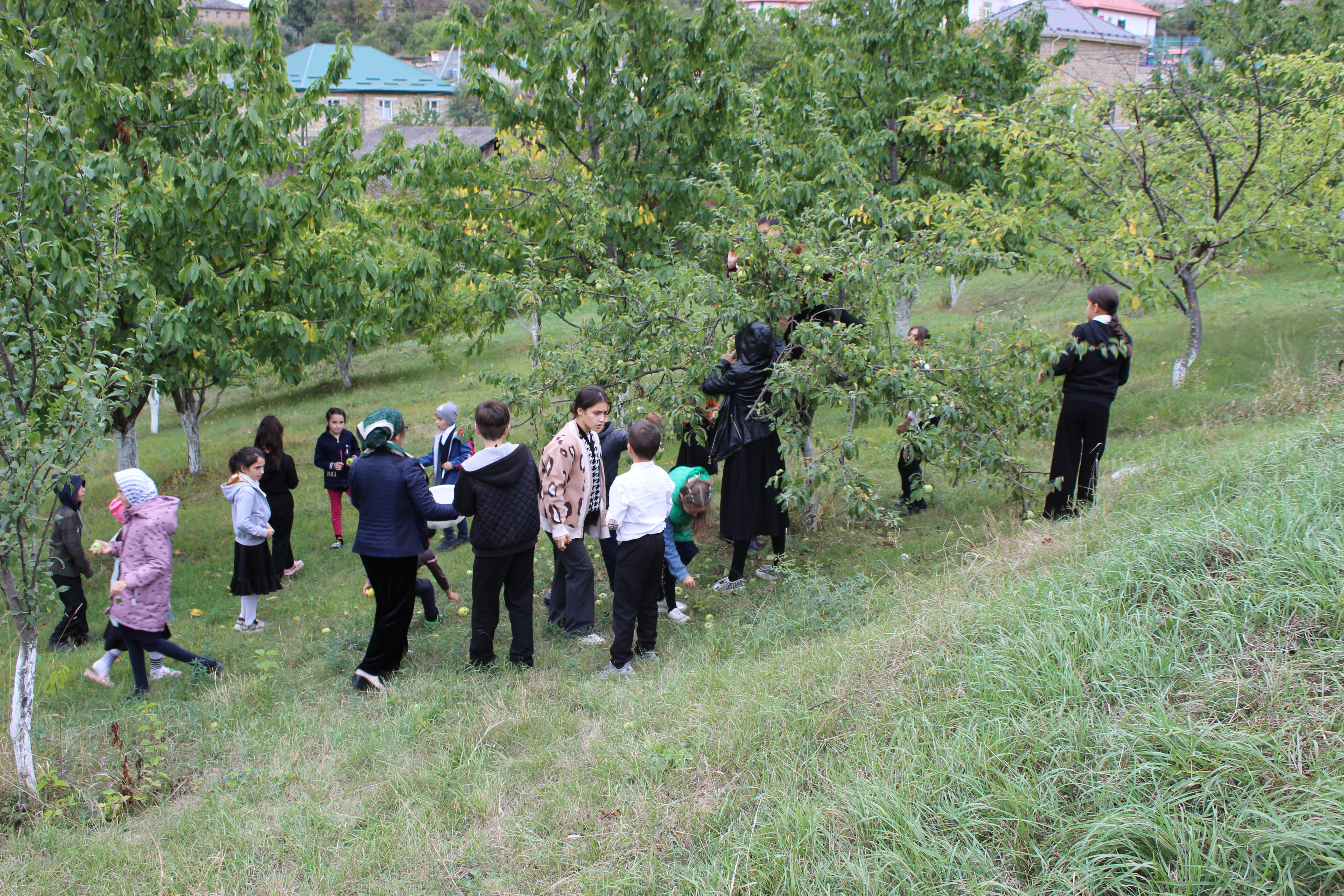 Затем дети вместе с воспитателями отправились собирать урожай в сад. Они с большим удовольствием ивесельем собрали урожай и угостили всех детей и работников центра.