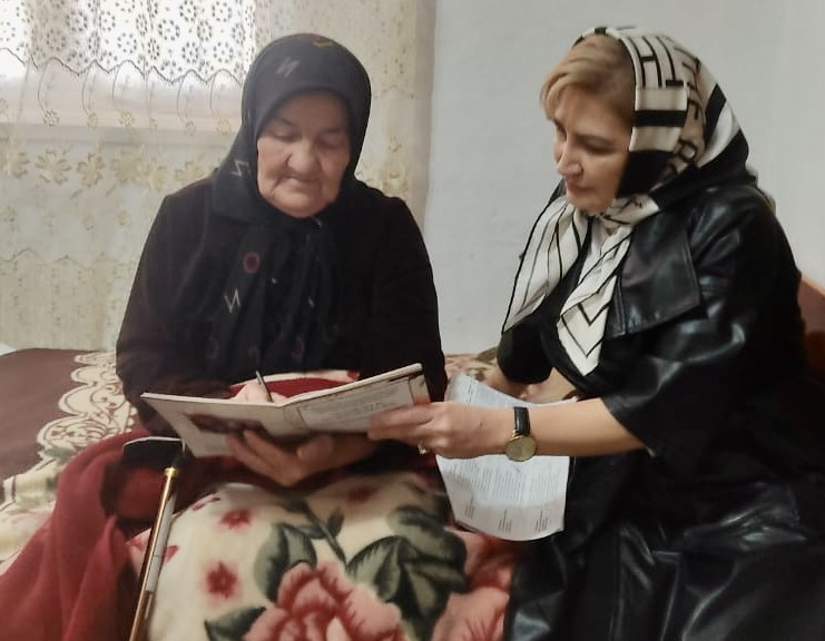 16.11.2022г. ГБУ РД КЦСОН в МО "Хасавюртовский район" Выезд заведующей отделением 5 Даибовой А.К. и специалистом по социальной работе Черивмурзаевой Н.К. с целью проверки работы социальных работников с. Цияб-Ичичали