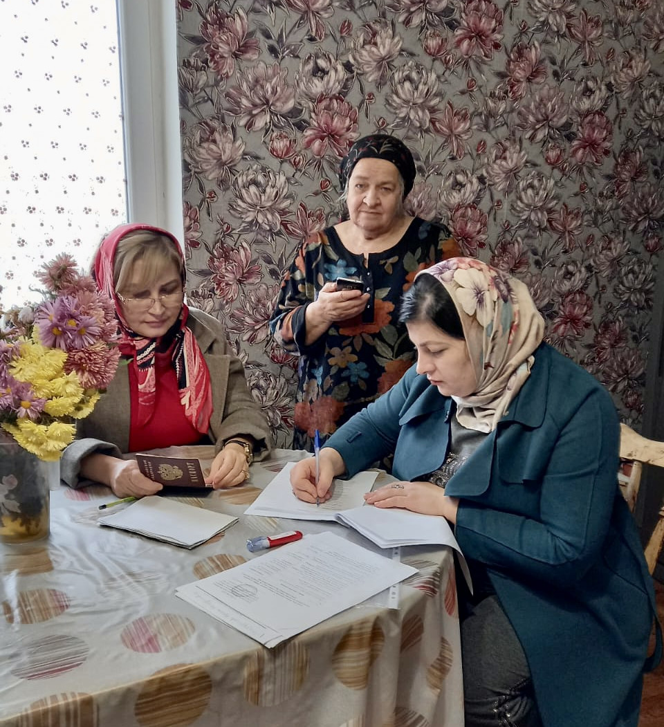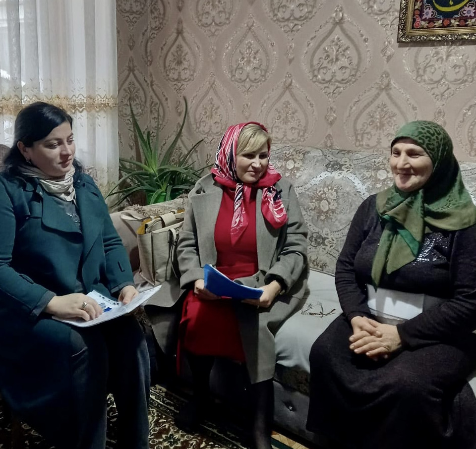 22.11.2022г. Выезд заведующей отделением 5 Даибовой А.К. со специалистами по социальной работе Черивмурзаевой Н.К. и Гусейновой М.Б. с целью заполнения социального паспорта на мобилизованных лиц с. Тукита.