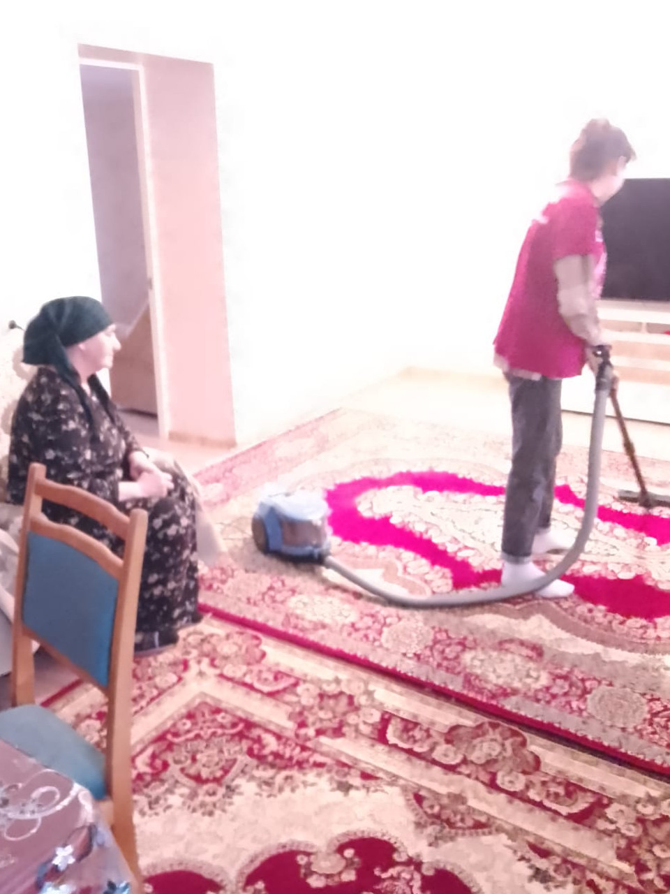 27.11.2022г. Волонтёры с. Куруш вместе с социальным работником Рамазановой З. оказали социально-бытовые услуги своим подопечным.