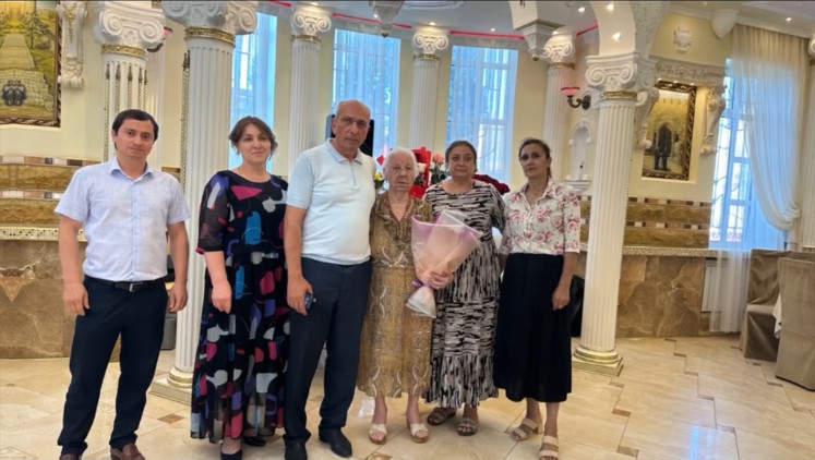 ?Поздравить юбиляршу пришли коллектив Комплексного центра социального обслуживания во главе с директором Саруглановым Т. З. Они пожелали своей подопечной крепкого здоровья, бодрости духа, оптимизма, чуткого и заботливого окружения и внимания родных и друзей.