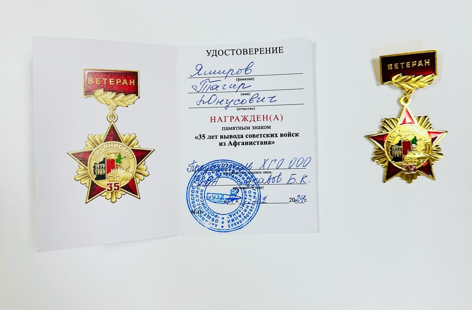 Также для участников афганских событий и почетных гостей Администрацией Хасавюрта был организован фуршет, где заместитель главы города Арсен Муртазалиев и председатель ХГО ООО "Российский союз ветеранов Афганистана" Бекболат Акавов вручили ветеранам памятный знак "35 лет вывода советских войск из Афганистана".