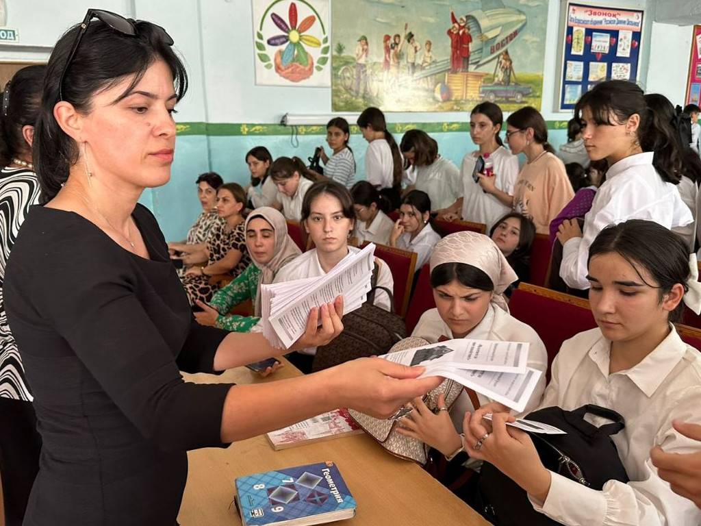 Работу провели заведующая отделения Азизова З.М. , медсестра Капиева П., психолог Исмаилова У., специалист Сайпуллаева З. Всем несовершеннолетним были предоставлены информационные буклеты « Мы в ответе за своё спокойствие». Представители школы поблагодарили за проделанную работу.