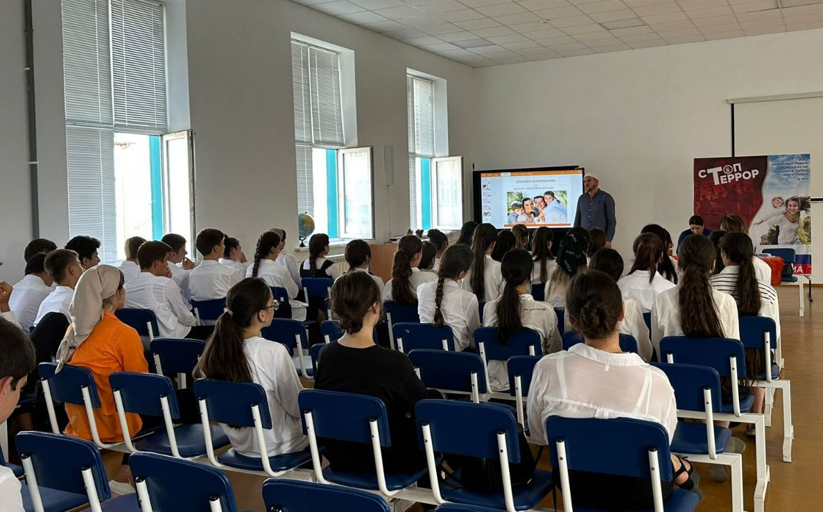 Для учащихся 9 , 10 , 11 классов была проведена лекция по идеологии противодействия терроризму на тему : « Терроризм чума XXl века» . Учащиеся проявили большой интерес и приняли участие в данной программе. Работу провели медсестра Капиева П . ,психолог Исмаилова У., имам с Новокаякент Насруллаев С. Учащимся были разданы информационные буклеты « Мы в ответе за своё спокойствие» . Дирекция школы поблагодарила за проделанную работу и попросила часто проводить такие мероприятия . Отдельную благодарность хотим выразить заместителю директора по воспитательной части Патимат Рамазановне.