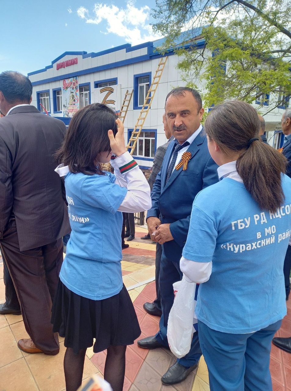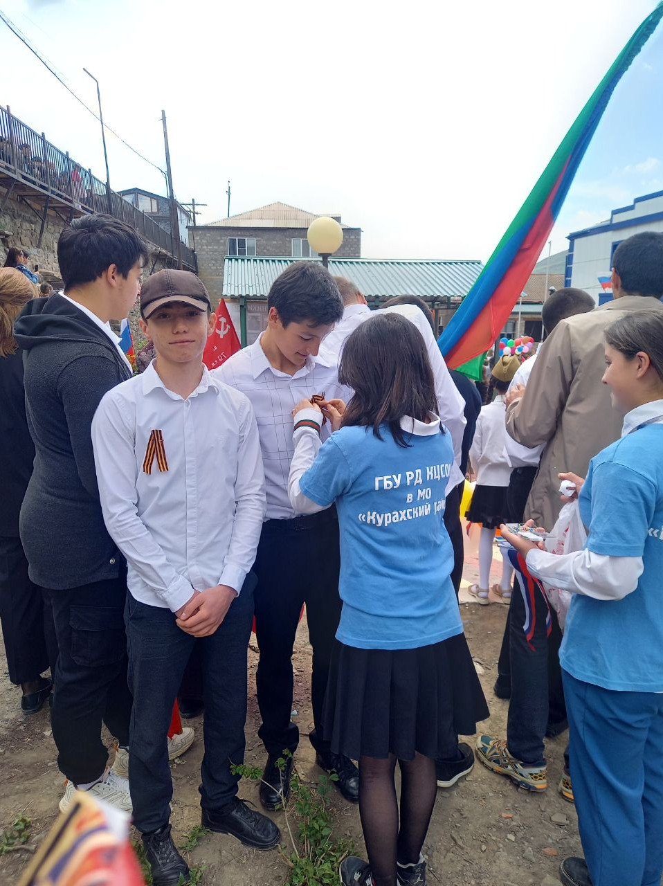 "Георгиевская ленточка" - общественная акция по раздаче символических ленточек. Проходит с 2005 года по инициативе "РИА Новости" и РООСПМ "Студенческая община". с тех пор акция стала традиционной и проводится ежегодно на средства общественных организаций с 24 апреля по 12 мая. Работники и волонтеры волонтерского отряда ГБУ РД КЦСОН в МО "Курахский район" приняли активное участие в акции "Георгиевская ленточка", посвященной Дню Победы , как символ уважения к исторической памяти победителей в Великой Отечественной войне. Главная цель акции - дать возможность каждому человеку выразить свое уважение к ветеранам войны, почтить память павших и продемонстрировать гордость за героическое прошлое нашей Родины.