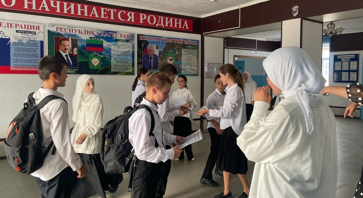 Психолог центра Алиева Аминат совместно с социальным педагогом Комсомольской школы Гимбатовой Суилят организовали и провели в школе информационную акцию: "Мы против террора!". К участию в акции были привлечены волонтеры Комсомольской школы "Свет добра", которые во время перемены раздавали ученикам листовки - памятки о том как вести себя в различных непредвиденных ситуациях: при обнаружении подозрительного предмета, захвата в заложники. Рассказывали, как в опасной ситуации вести себя в толпе, если по каким то причинам там оказались.