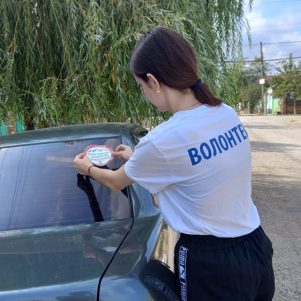 Волонтерами отряда «Милосердие» при ГБУ РД КЦСОН в МО «Каякентский район» проведена акция по расклеиванию наклеек с символикой противостояния терроризму, патриотизма и мужества.