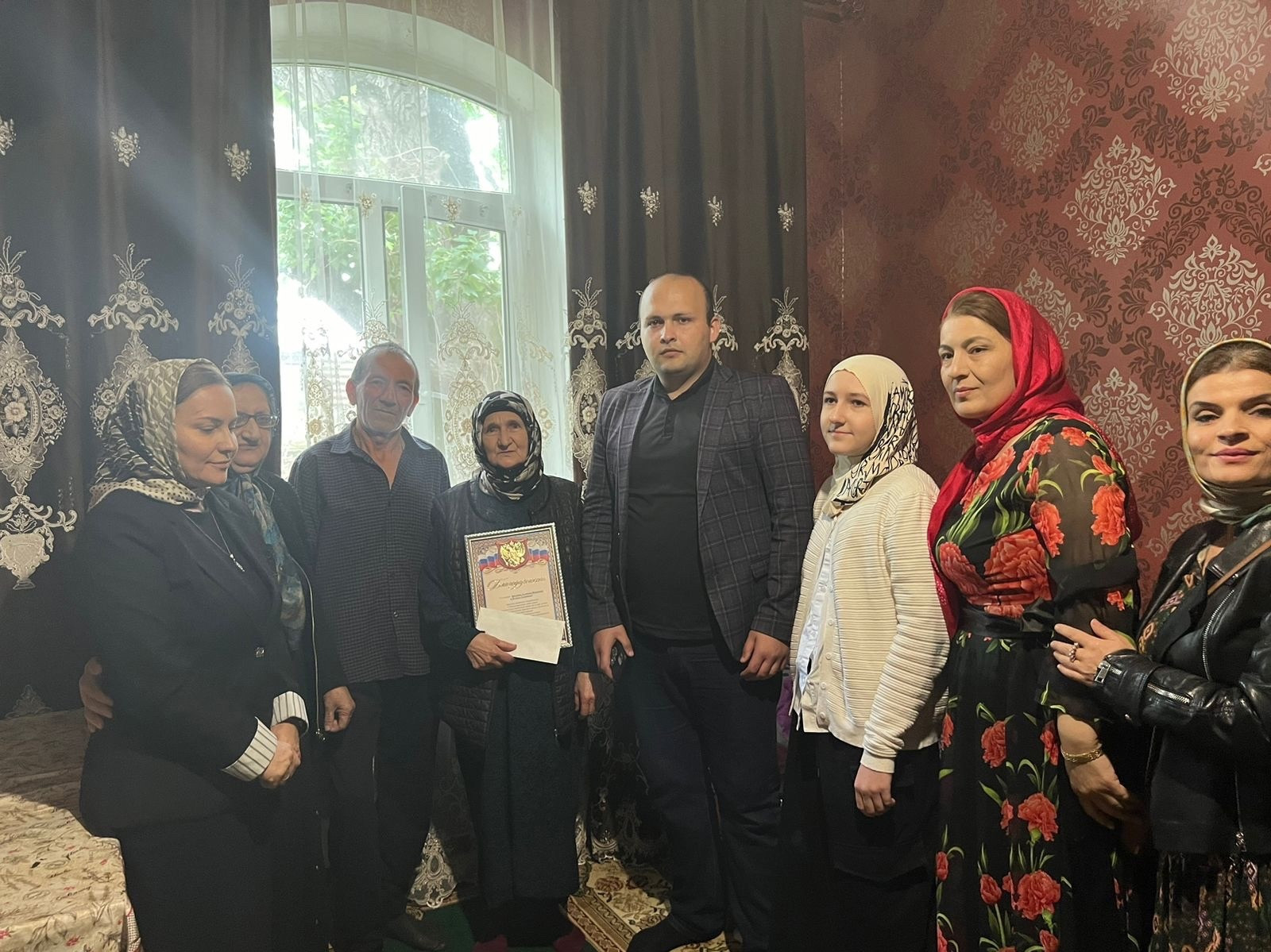 На дому посетили подопечные семейные пары, прожившие в браке более 50 лет: семьи Расуловых и Эгизбаевых, а также семью Давудовых, в которой двое сыновей являются участниками СВО.