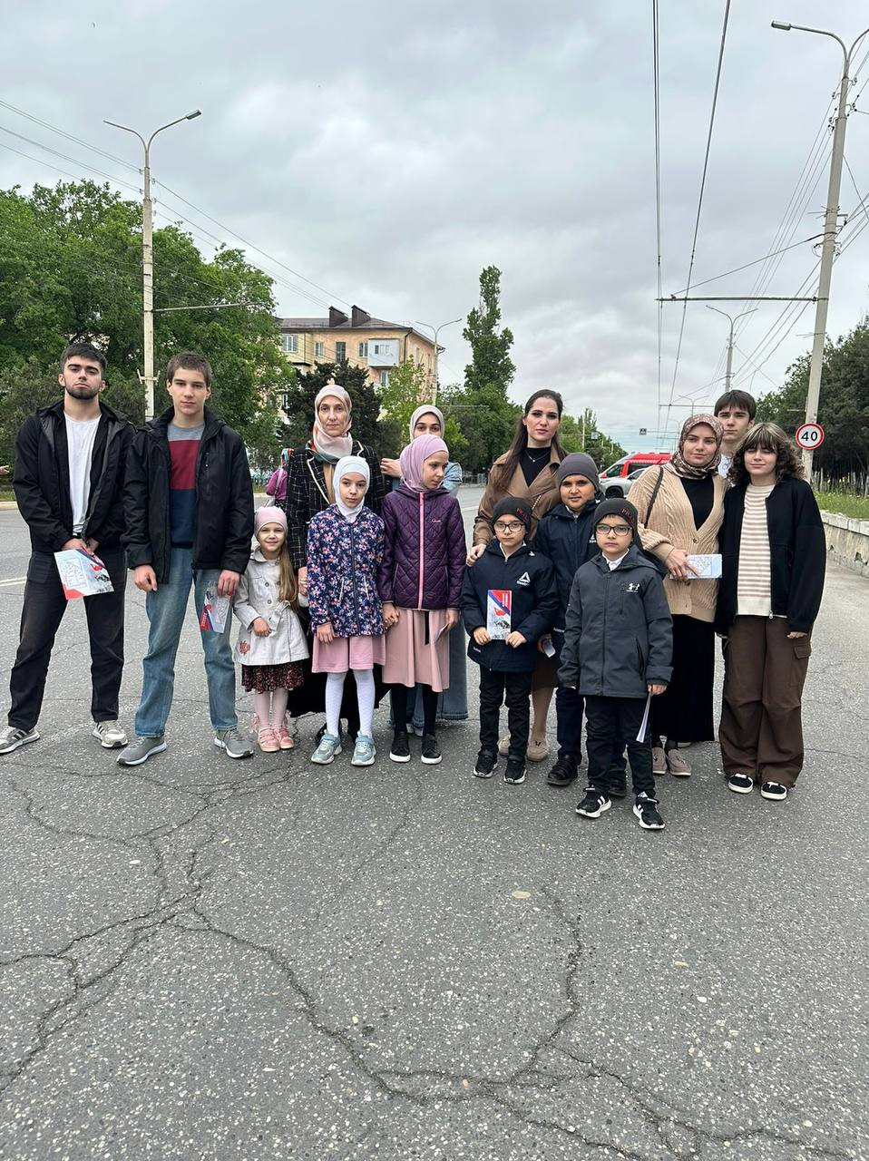 Работники республиканского центра социальной помощи семье и детям г. Махачкала совместно с 4 многодетными семьями в количестве 20 человек, приняли участие в торжественных мероприятиях, приуроченных к старту акции "Знамя Победы" проходящих на площади г. Каспийска.