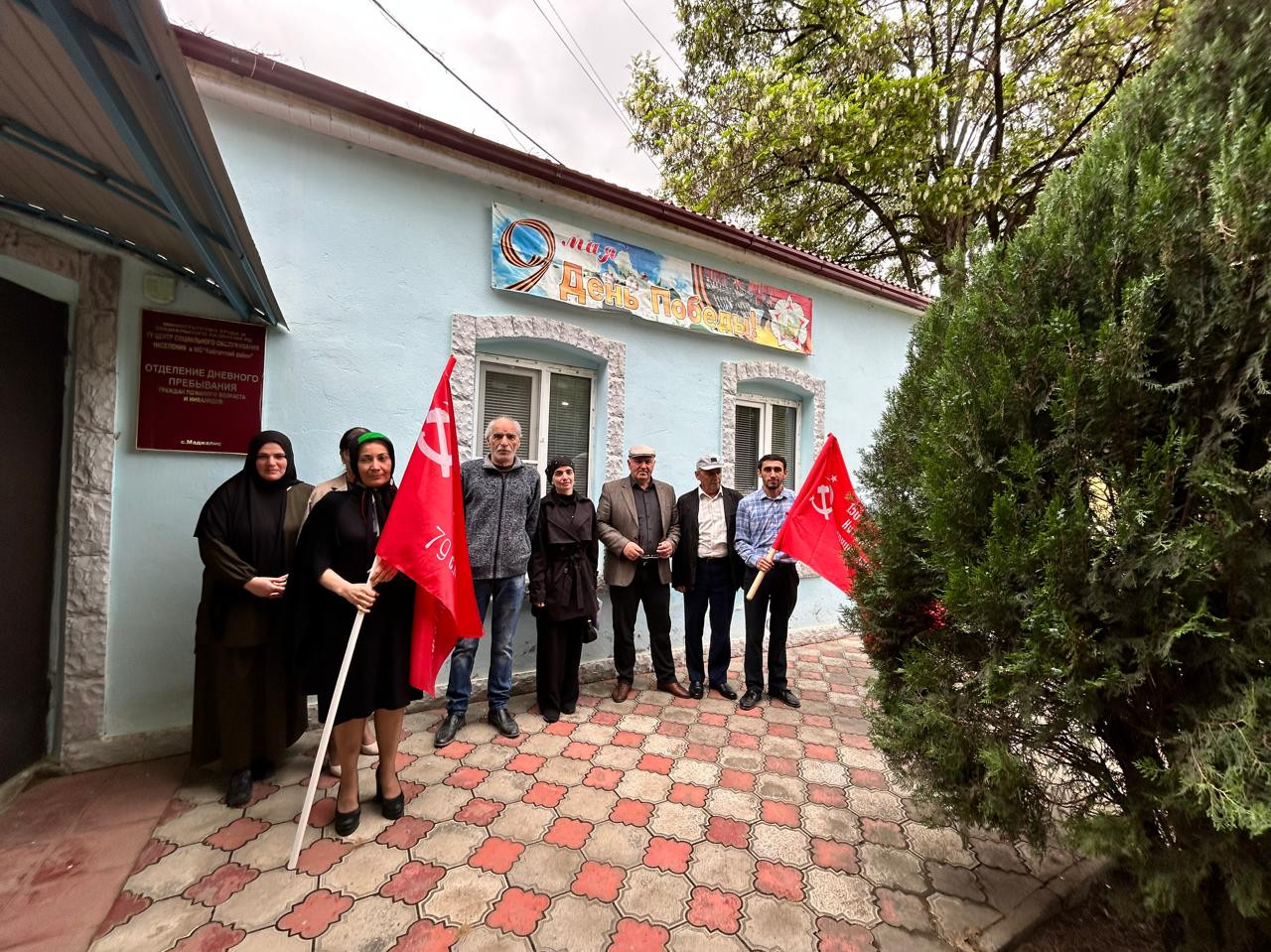 В целях создания праздничного внешнего облика, фасадная часть здания оформлена в соответствующей тематике - символом священной Победе - флагом «Знамя Победы». Все работники учреждения активно используют главный символ праздника - Георгиевскую ленту. В рамках, утвержденных социально значимых мероприятий в рубрике «Под Знаменем Победы» в полустационарных и стационарных структурных подразделения учреждения в канун праздника 9 мая, проводится цикл мероприятий по увековечиванию и почитанию исторической памяти, гордости за подвиг и победу старших поколений, преемственности, передаче духовно-нравственных принципов и ценностей, патриотического и духовно-нравственного воспитания подрастающего поколения.