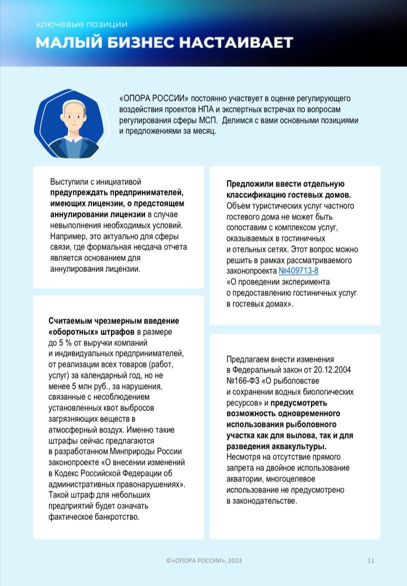 Эксперты «ОПОРЫ РОССИИ» на постоянной основе участвуют в законотворческой и аналитической работе в сфере малого бизнеса. Аналитический вестник «Малые новости» содержит в себе ключевые позиции «ОПОРЫ РОССИИ», результаты исследований и мониторингов, оценку законодательных инициатив и многое другое. Предлагаем вам ознакомиться.