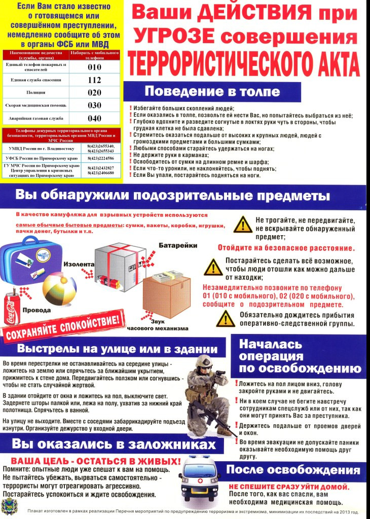 Действия при подозрении на вероятность теракта
