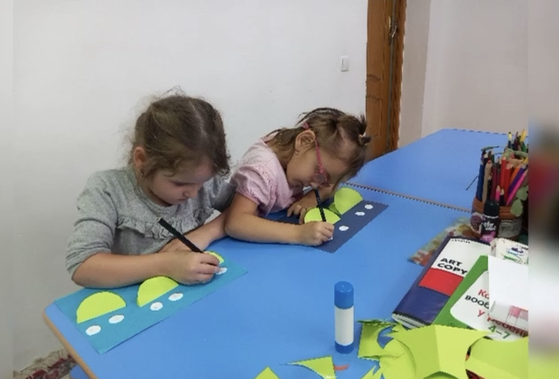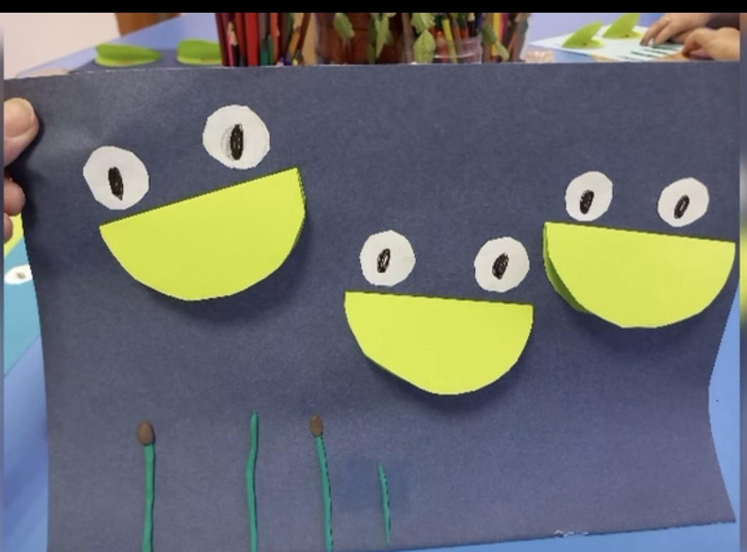 Воспитатель Муртазалиева Л.О. провела кружок " Почемучки", аппликация " лягушата"