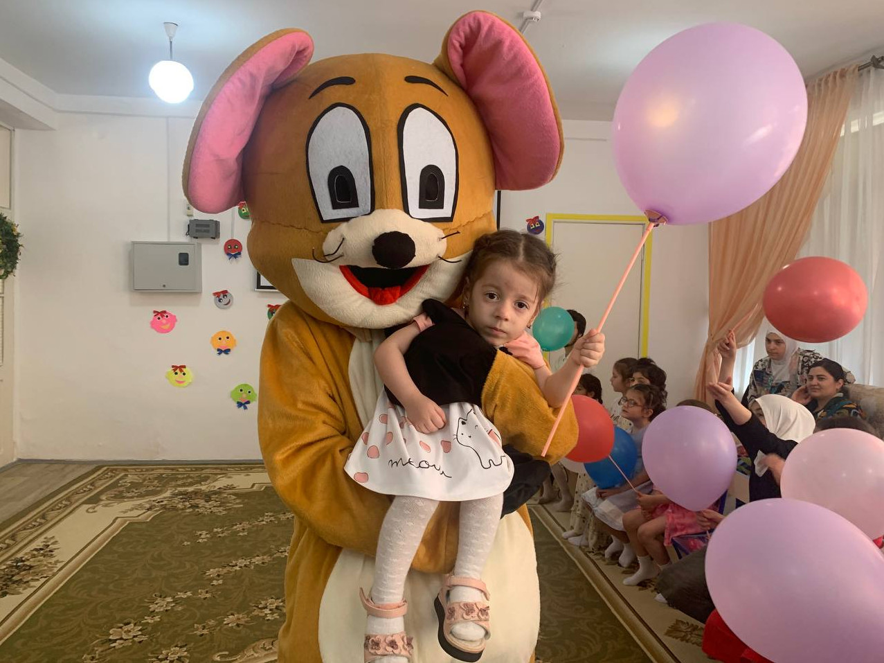 Детям с ограниченными возможностями преподнесли воздушные шары, чем вызвали восторг и радость детишек. Также детей развлекала ростовая кукла «Мышонок -Джерри». Дети с большим удовольствием пели , танцевали и водили хоровод. Улыбки детей — это, пожалуй, самое лучшее, что может радовать взгляд, в них столько искренности и доверия.