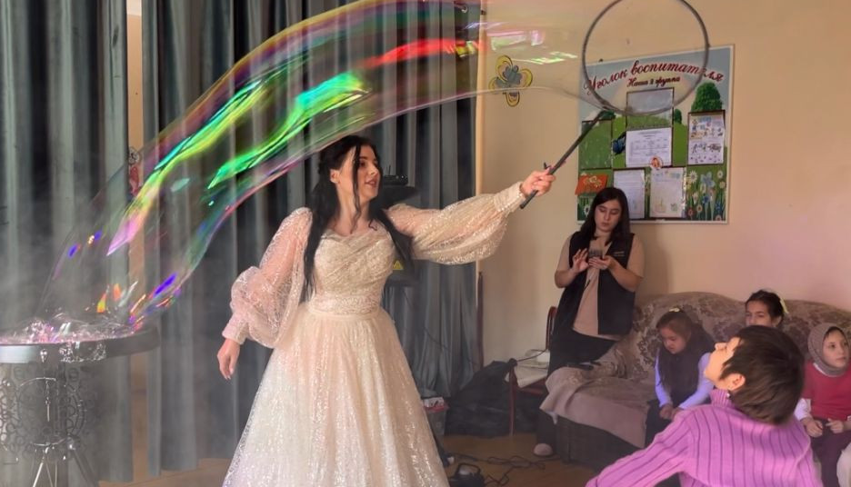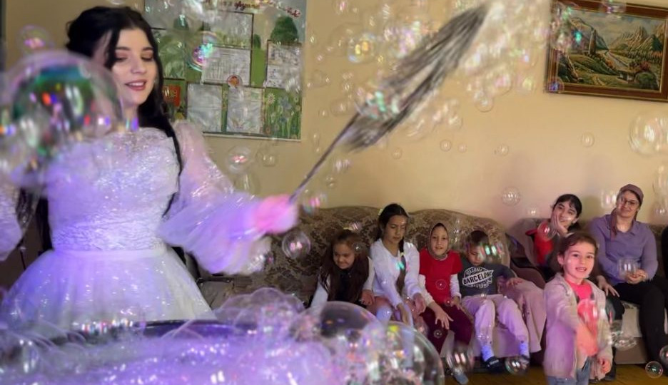Так, в этот последний день месяца Рабиуль Авваль (месяц мавлидов) предприниматели Магомедова Шарустан и Ахмедова Хадижат решили сделать детям сюрприз. Шоу "Мыльные пузыри" подняло детям настроение, создало волшебную атмосферу и дало возможность забыть о процедурах, а подарки помогут им продлить эти чувства восторга и напомнят еще ни раз об этом дне.