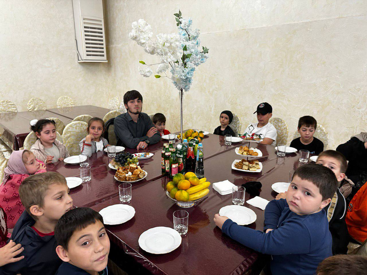 Для детей были накрыты столы и подготовлена программа с песнями и конкурсами.