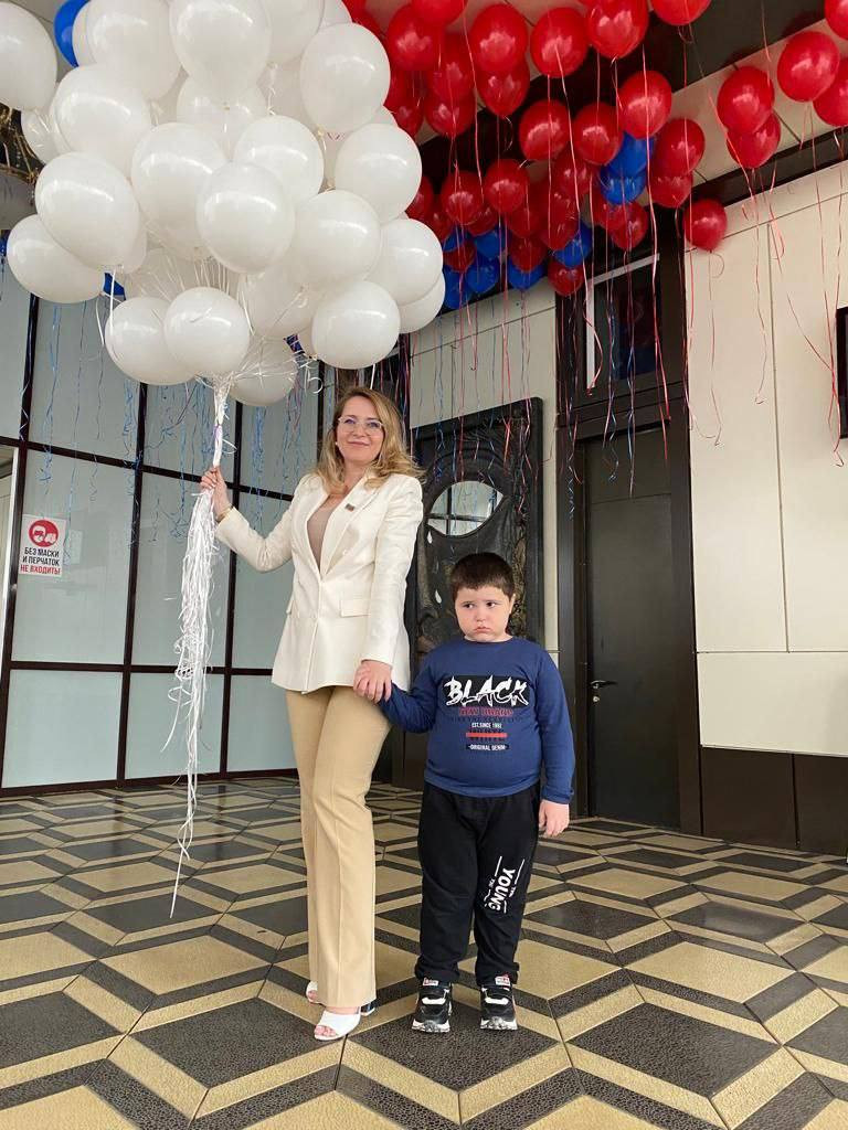 По окончании концертной программы, детям вручили подарки от депутата, и запускали воздушные шары триколора флага РФ.