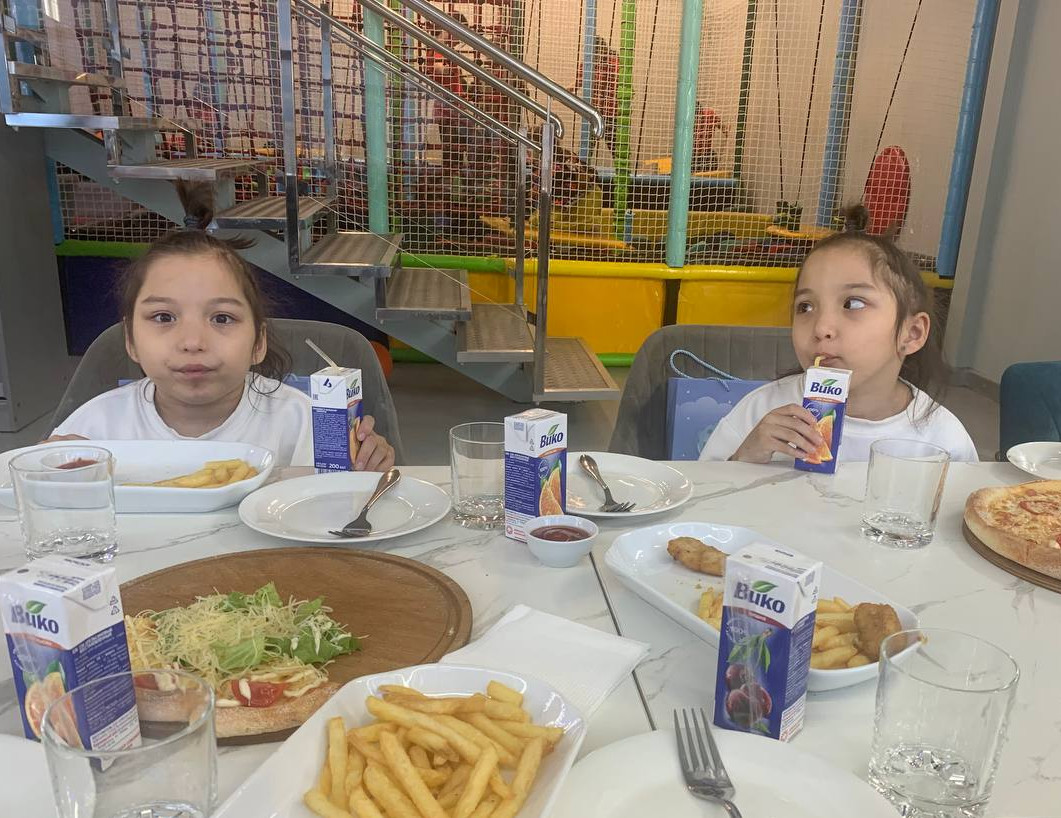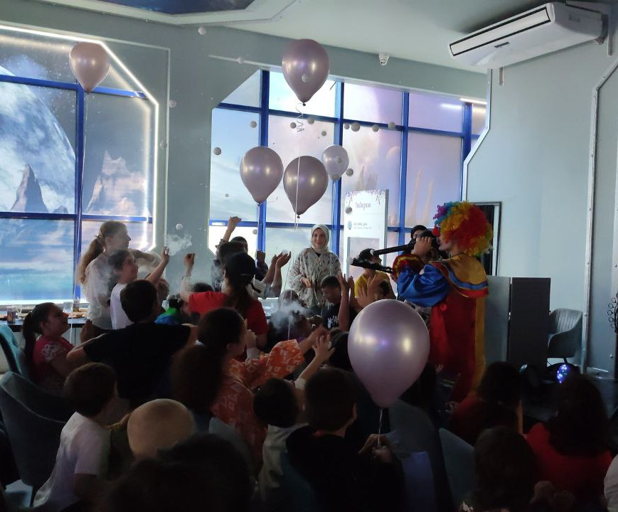 Для детей были накрыты столы и подготовлена программа с песнями и конкурсами, которые проводили клоун Клепа и Чебурашка. Были подготовлены музыкальные представления, шоу мыльных пузырей.