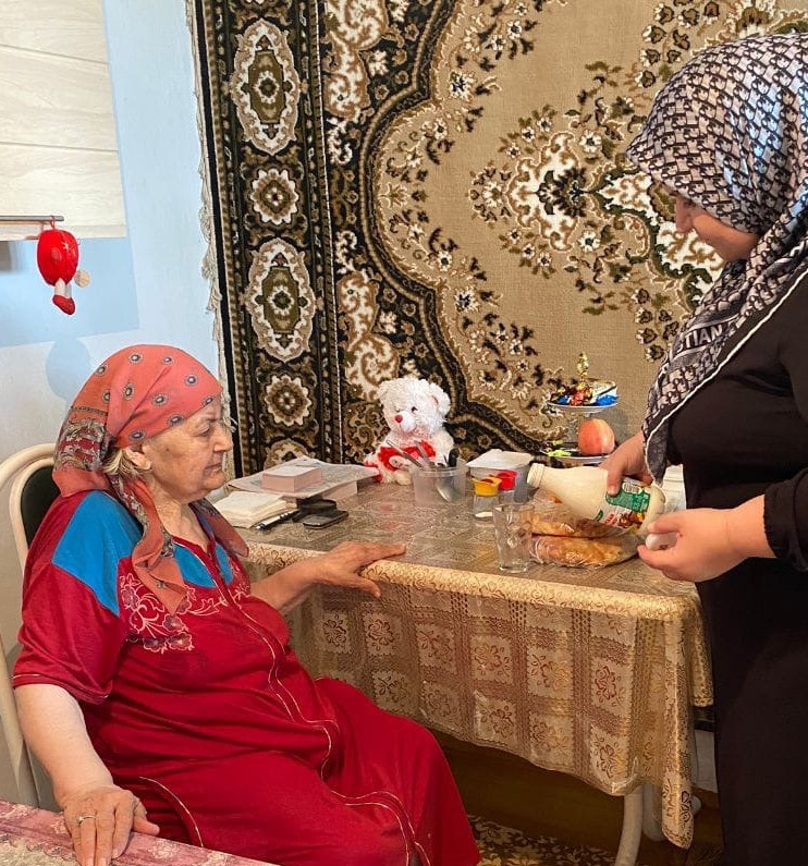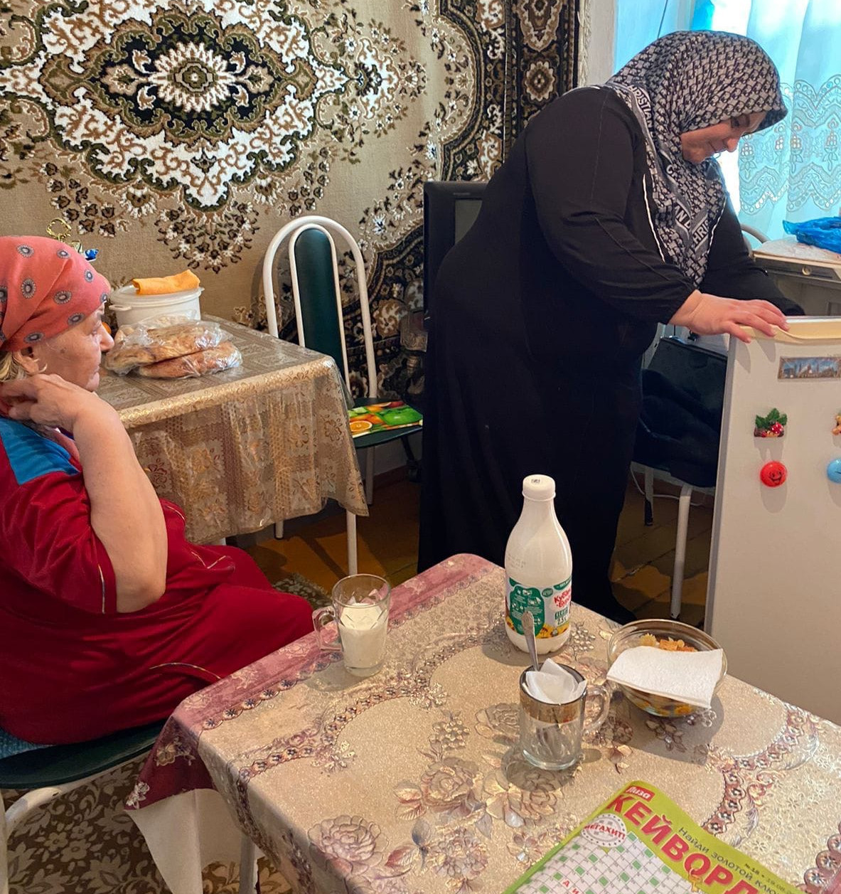 Социальный работник отделения №4 надомного обслуживания Комплексного центра социального обслуживания населения г. Хасавюрт, Гаджиева Калимат, предоставляет своим подопечным социально-бытовые услуги.