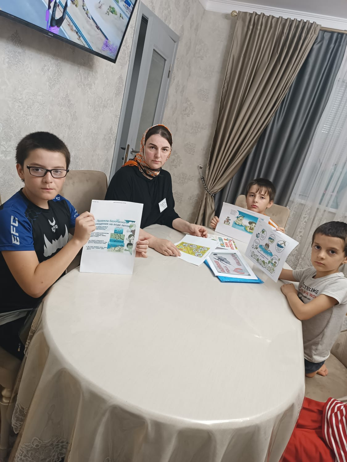 Специалист по работе с семьей Багомедова Замира провела беседы на темы "Правила поведения на воде" и " Вред наркотиков" среди юных получателей социальных услуг.