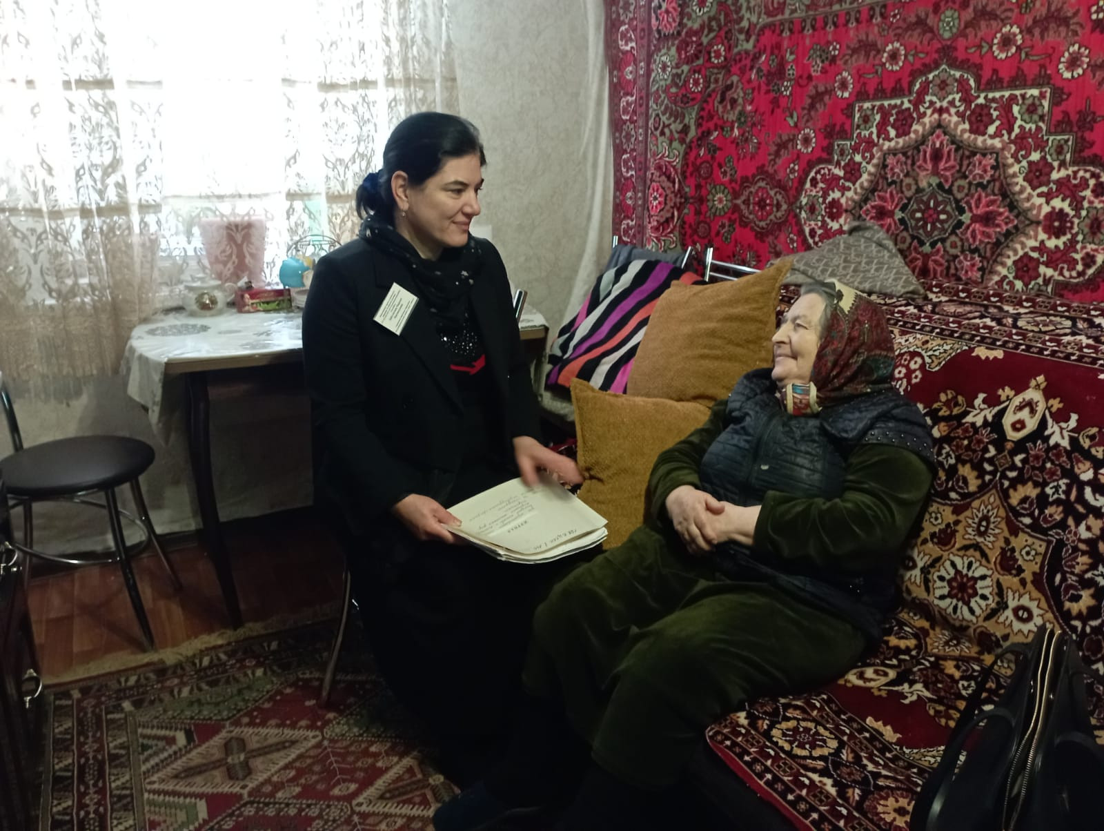 Специалисты отделения социального обслуживания на дому граждан пожилого возраста и инвалидов, Алиева Раисат и Бибулатова Марьям, посетили подопечных соц работницы Джабраиловой Бурлият, проверили качество оказываемых соц. услуг