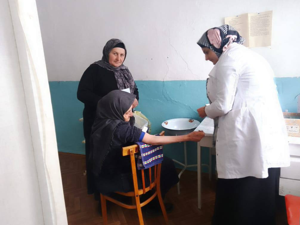 Социальный работник 1 отд. СО на дому Ахмедова Рабият сопроводила своих подопечных в участковую больницу села, для проведения медицинского осмотра.