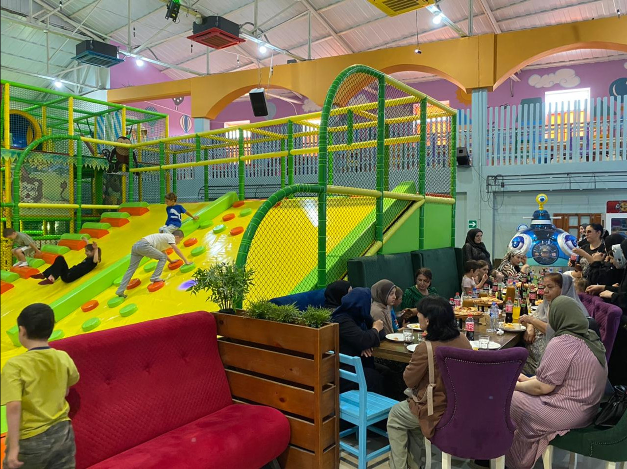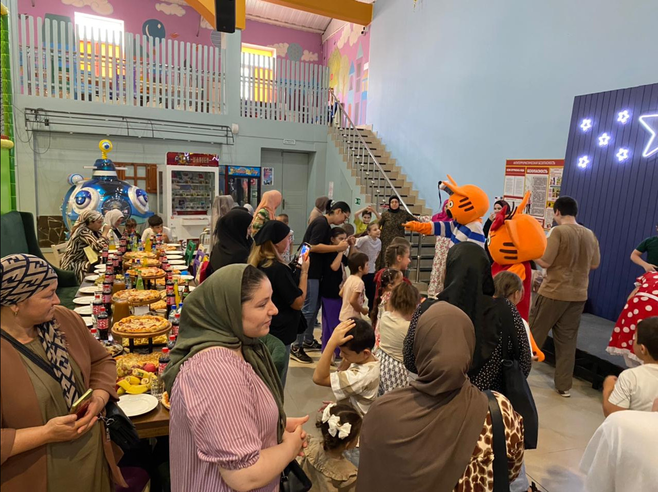 Газимагомедов Г.И. привез огромное количество угощений, чтобы к приходу детей и их родителей столы были накрыты, и они сразу окунулись в праздничную атмосферу. Детей с ограниченными возможностями здоровья сопровождали мамы и бабушки, братишки и сестренки в общей сложности в центре разместились более 100 человек. Пока одни танцевали и пели вместе с аниматорами, другие развлекались на аттракционах. В перерывах подходили к накрытым столам, которые ломились от всевозможных угощений, начиная с блюд дагестанской и европейской кухни, заканчивая обилием сладостей, фруктов и соков.