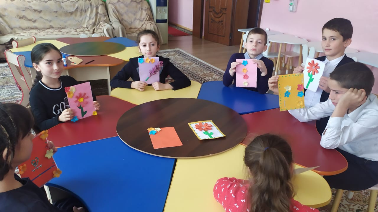 В канун наступающего праздника выражения своей любви маме в виде яркого букета цветов изготовили воспитанники Центра под руководством инструктора по труду Патай Забитовны.
