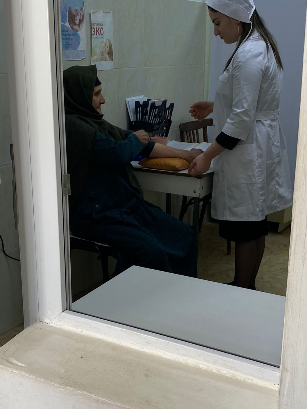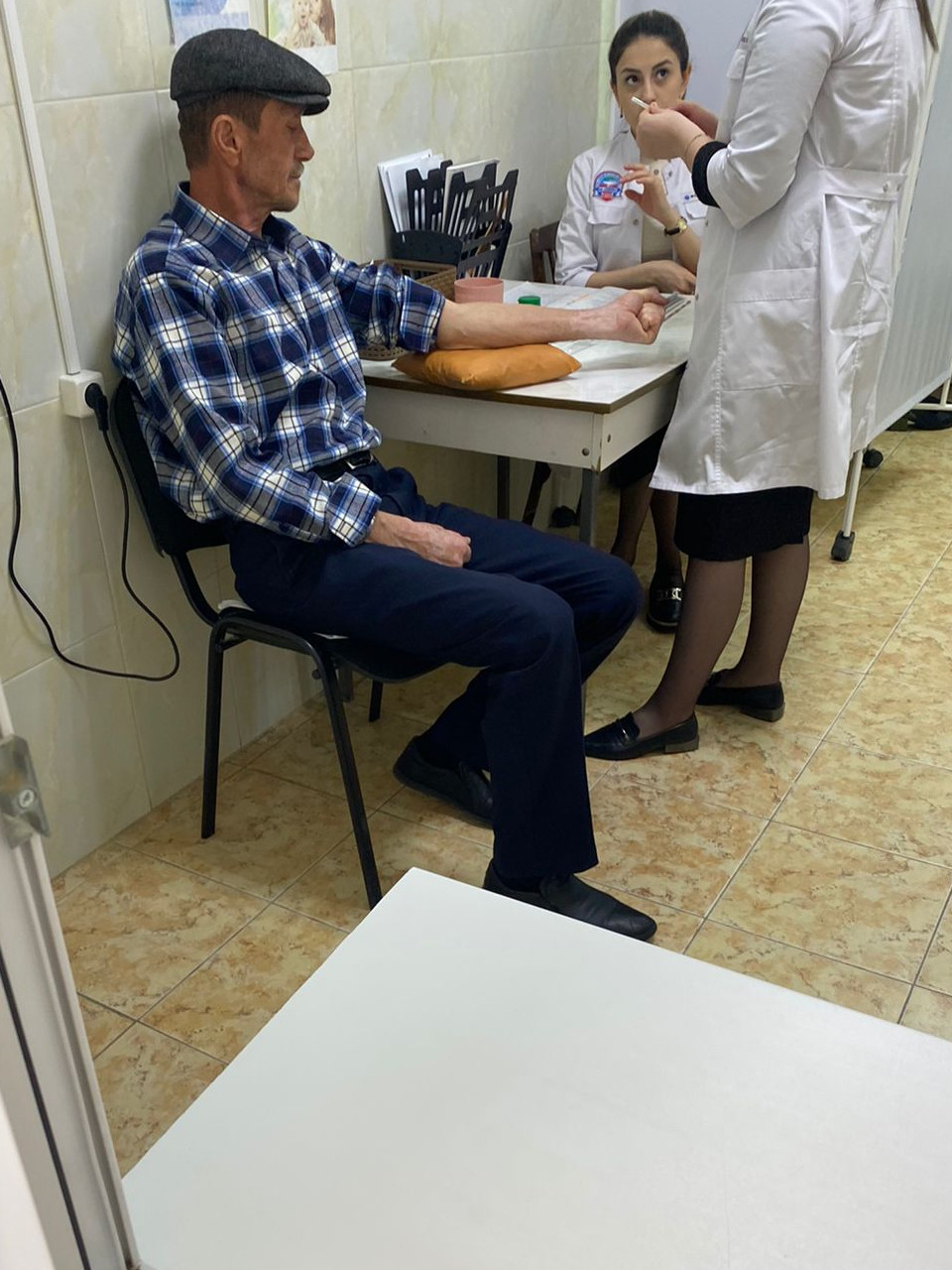Национальный проект Демография - Старшее поколение направлен на своевременное оказание медицинской помощи граждан пожилого возраста имеющим сложности в передвижении и одиноко проживающим. По графику в это день осуществлен выезд в с. Капкайкент, откуда выехали 4 граждан пожилого возраста в сопровождении социального работника и медицинской сестры учреждения. В ходе диспансеризации граждане сдали анализы крови, прошли флюорографию, кардиограмму, прошли осмотр у таких специалистов как окулист,невролог и т.д., в зависимости от направления амбулаторного лечащего врача. Всех граждан доставили по адресу проживания.