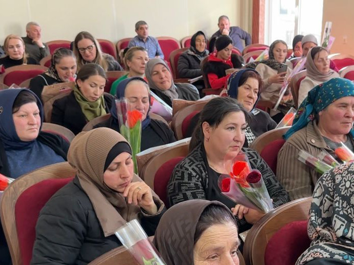 Накануне Международного женского дня 8 Марта для прекрасного половина человечества организовали встречу-концерт в в актовом зале администрации Лакского района. На праздничную акцию пригласили так же родных и близких военнослужащих.
