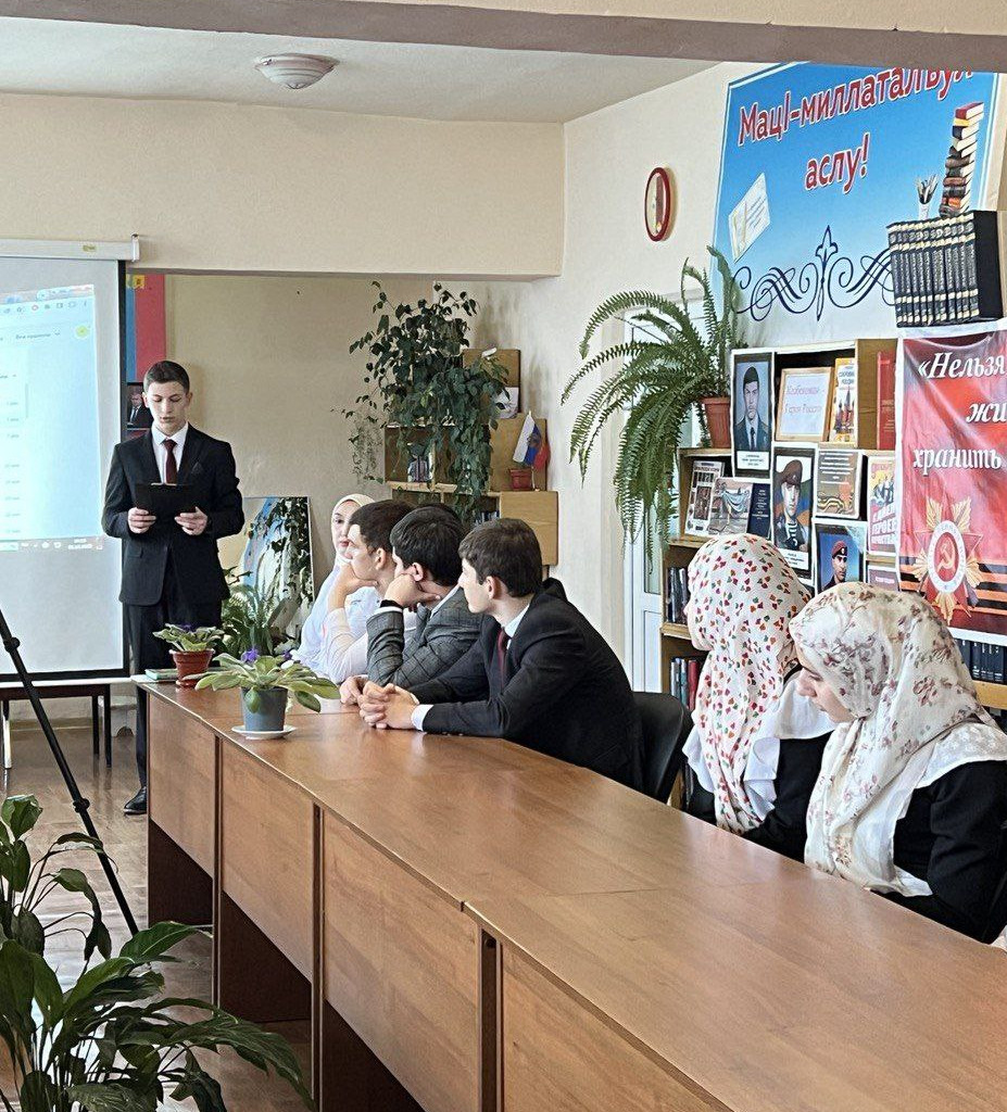 Старшеклассники рассказали о подвигах Героев России, уроженцев Казбековского района - Арзулума Ильясова, Юрия Салимханова, Магомедказима Гайирханова, павших смертью храбрых в борьбе с бандформированием. Также продекламировали стихи о героях России, пожертвовавших своими жизнями ради свободы и безопасности своих сограждан.