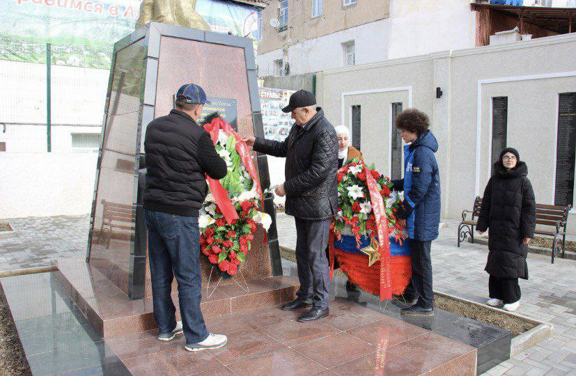Торжественные мероприятия начались с шествия и возложения венков памятнику Героя Советского Союза Магомедзагида Абдулманапова и мемориальным доскам погибших участников СВО.