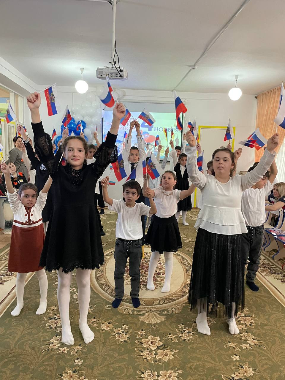 Праздник начался со слов поздравления ведущей, она пожелала всем жить дружно и мирно, помнить о подвигах своих предков и быть достойными гражданами своей страны. Затем был представлен познавательный видеоролик, дети были ознакомлены с историей становления Руси и данного праздника. На мероприятии подопечные прочитали стихи о Родине, спели песни о России, играли задорные игры, отгадывали загадки и поговорки. Праздник завершился патриотичным флэшмобом " Я, ты, он, она! ".Детям были вручены сладкие подарки.