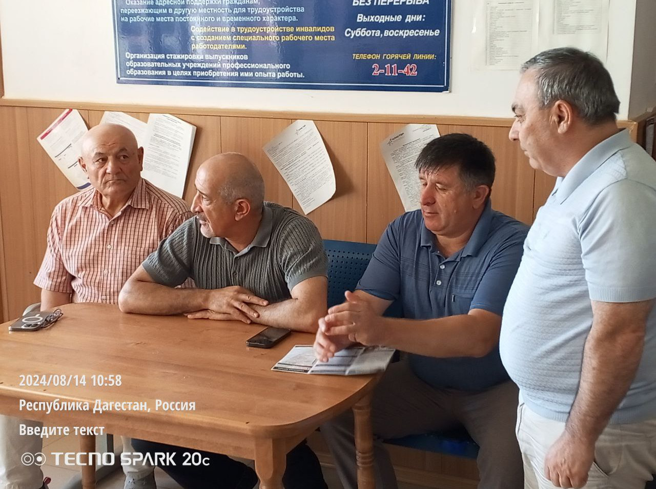 Сегодня, т.е. 14.08.2024 года в здании ГКУ РД ЦЗН в МО «Дахадаевский район было проведено очередное совещание , приуроченное ко « Дню открытых дверей» с целью информирования безработных граждан и ищущих работу по вопросу заключения контрактов на военную службу. На совещании присутствовали представители районной администрации: Глава МО «Дахадаевский район» Абдулкадыров М. А., заместитель главы района по социальному блоку Магомедов А. Г., начальник отдела внутренней политики района Бибулатов А.М., заместитель главы районного собрания Ибрагимов А. М. На совещании поднимались вопросы о проблемах контрактной службы, социальных льготах и гарантиях государства на военной службе. Также были даны разъяснения о единовременных выплатах, заключившим контракты на военную службу. Один из участников подчеркнул, что служба по контракту - это не только возможность защитить Родину, но и даст шанс для молодёжи получить новые навыки, опыт в дальнейшей работе и обеспечить себе достойные условия жизни. Второй из участников говорил о внутренней и внешней политики страны и отметил, что контрактная служба играет важную роль в укреплении обороноспособности страны.