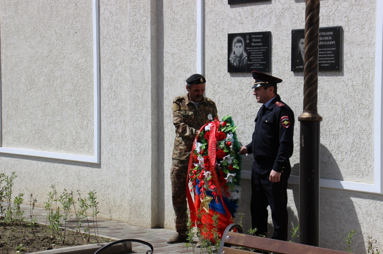 На возложении венков приняли участие: Глава Ахвахского района Магомед Муртазалиев, начальник ОМВД РД по Ахвахскому району Кодочиев Кадим, председатель районного Собрания депутатов Шамиль Таймасханов, участник СВО Имангазали Мусаев и ветеран Чернобыля Магомед Рохоев и ветераны афганских событий.