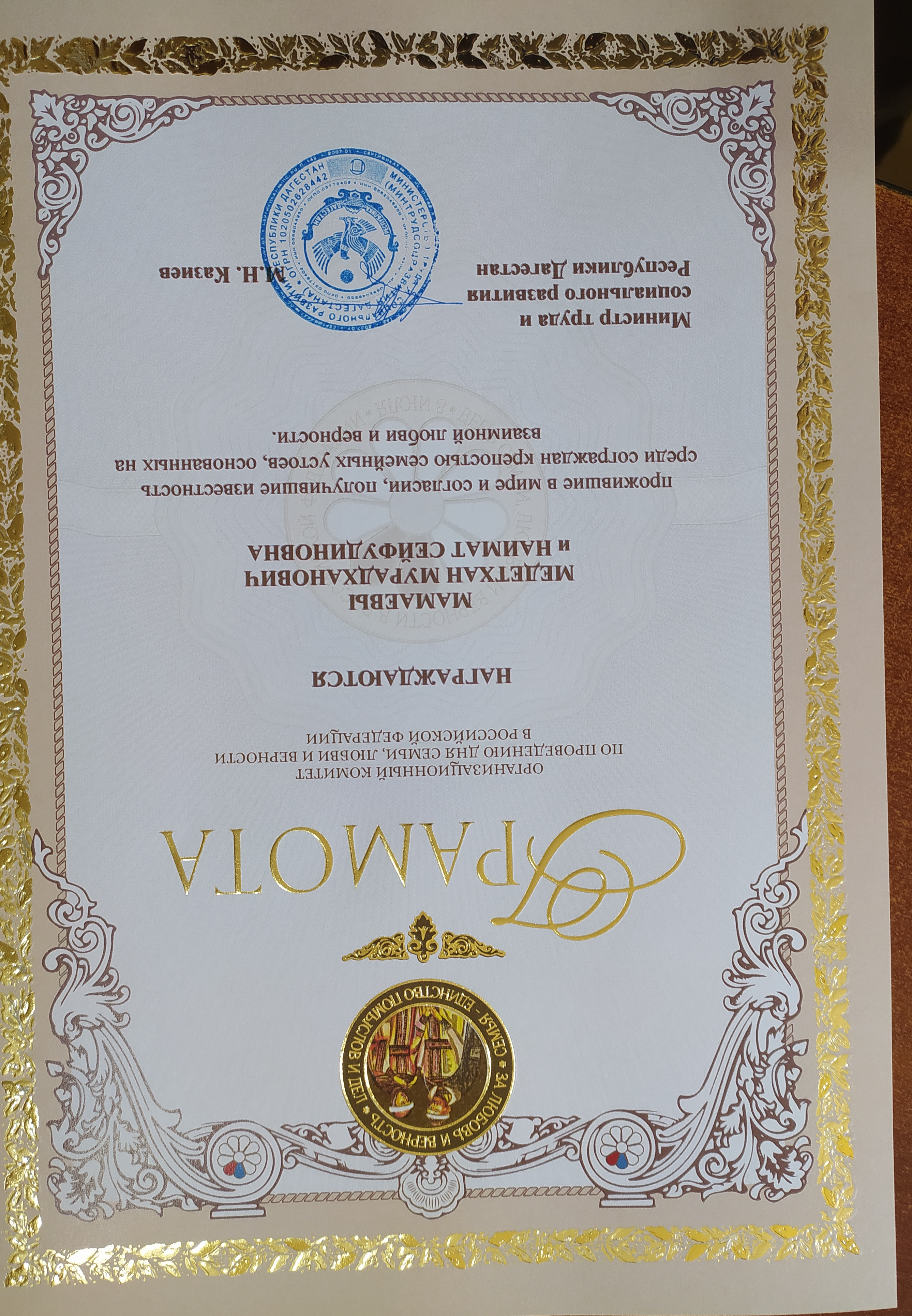 8 июля в нашей стране отмечают День семьи, любви и верности, директор управления социальной защиты населения Рутульского района совместно с директором центра социального обслуживания вручили награды "За любовь и верность" семьям Магомедрагимовым и Мамаевым, проживающих в с. Рутул.