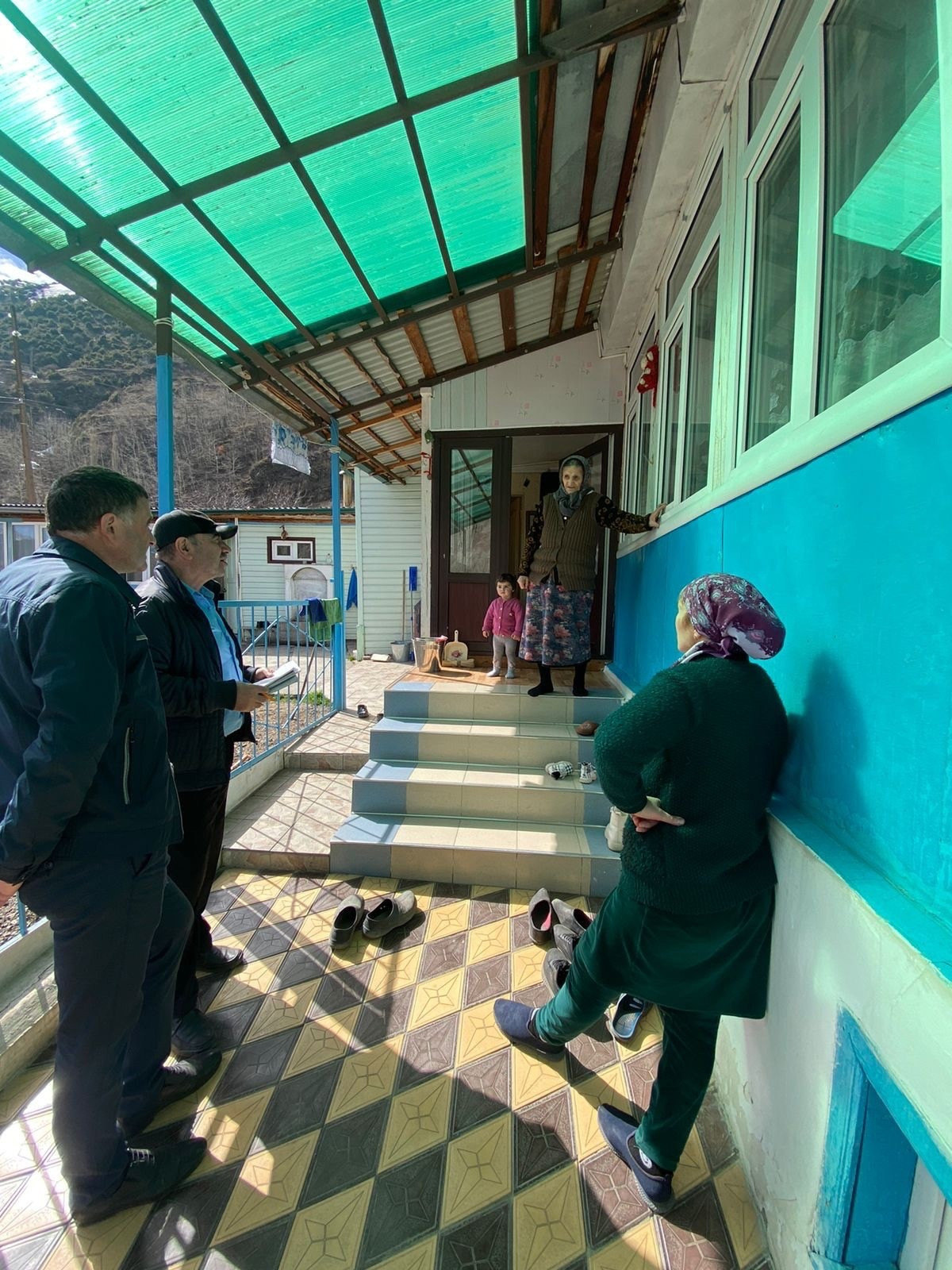 Директор ГБУ РД ЦСОН в МО «Рутульский район» Османов Амрах Н. с заведующим отделения на дому Баловым М.Б. на подворном обходе
