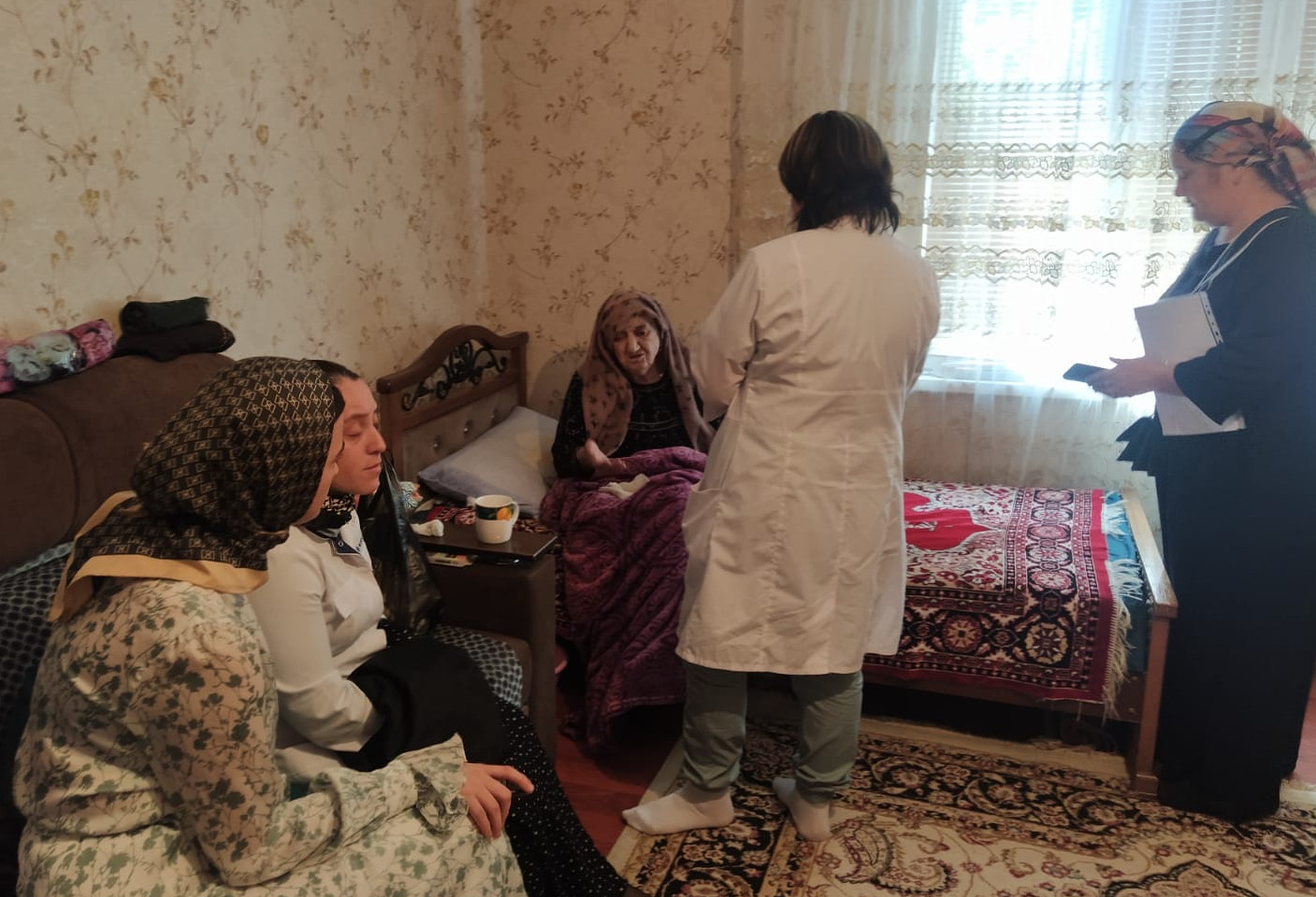 21.09.2023 г. мобильная бригада ГБУ РД КЦСОН в МО «Ботлихский район » в составе специалистов по социальной работе Газиевой У. Шамсудиновой Х. совместно с работниками медицинской организации терапевтом ЦРБ Магомедовой А. невропатологом Нурахмаевой М. с окулистом и медицинской сестрой по ЭКГ в рамках реализации национального проекта Демография, регионального проекта «Старшее поколение»осуществили посещение лиц старше 65 лет подлежащих к доставке в медицинские организации в целях диспансеризации по с.Тандо Ботлихского района .