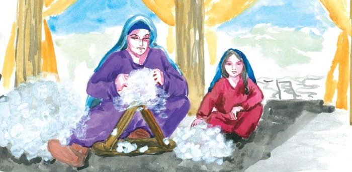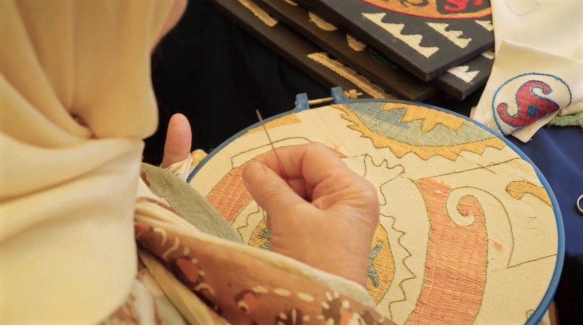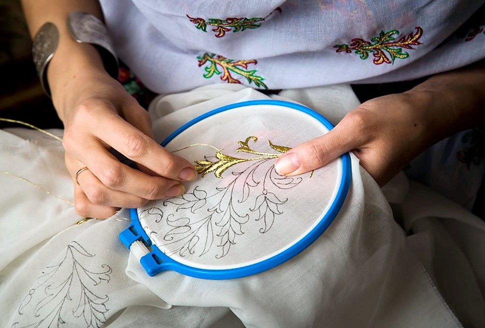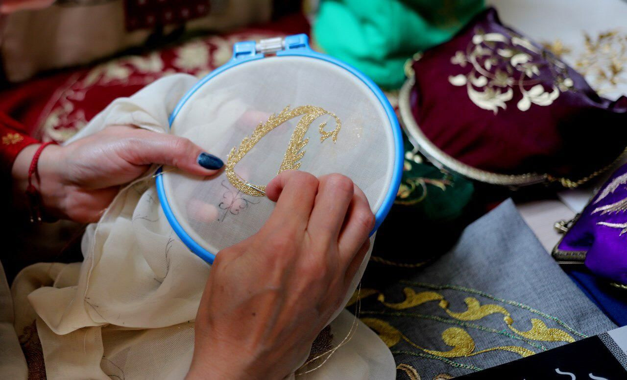 Рукодельницы из Дахадаевского района Фатима Кишова с племянницей, в своей мастерской продемонстрируют, как веками дагестанские мастерицы расшивали предметы одежды золотыми нитями.