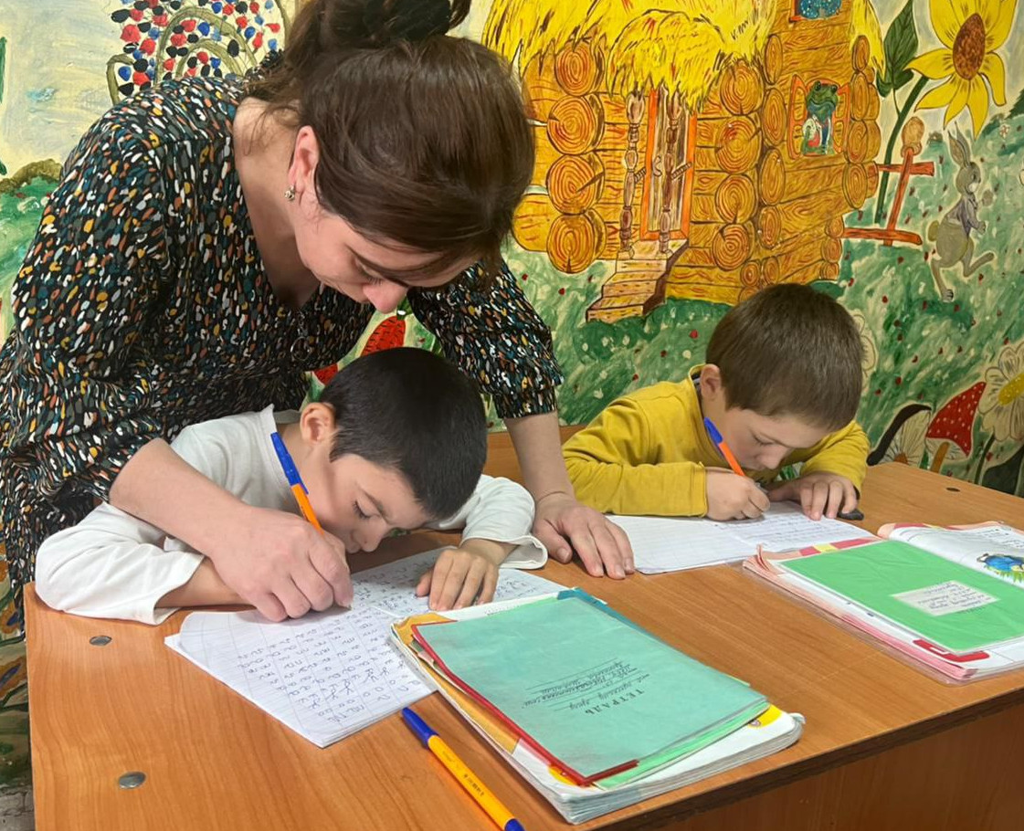 В отделение социального обслуживания детей и семей с детьми,социальные педагоги Магомедкадиева З .и Гусейнова Д. ежедневно выполняются с учащимися домашнюю работу ,повторяем пройденный материал и занимаемся внеклассными занятиями .Дети с удовольствием приходят и занимаются.