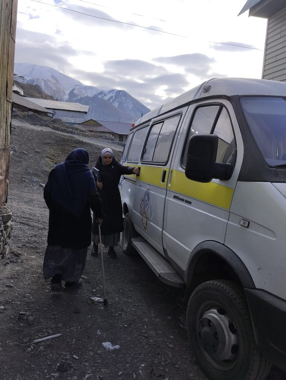 Доставка лиц старше 65 лет, проживающих на территории Цунтинского района, в медицинские организации для проведения диспансеризации и профилактических осмотров. ГБУ РД ЦСОН в МО «Цунтинский район» в рамках реализации национального проекта «Демография», регионального проекта «Старшее поколение» осуществляет доставку лиц старше 65 лет, проживающих в сельской территории на обследование в медицинские организации для проведения профилактических осмотров. Ответственность за доставку, социальное сопровождение, и безопасность граждан несет Центр социального обслуживания населения. Перевозка пассажиров осуществляется бесплатно, на специализированном автомобиле, который оснащен оборудованием для транспортировки людей с ограниченными возможностями здоровья. Организация поездки включает: сопровождение лиц старше 65 лет, проживающих в сельской местности, от места жительства до медицинской организации и обратно, а также сопровождение маломобильных лиц старше 65 лет, проживающих в сельской местности, в медицинской организации; помощь лицам старше 65 лет, проживающим в сельской местности, в посадке в транспортное средство и высадке из него; предоставление подъемного устройства и спуск лиц старше 65 лет, проживающих в сельской местности, на креслах-колясках из помещения к транспортному средству и обратно. Работа «мобильной бригады» осуществляется в соответствии с согласованным планом-графиком ГБУ в МО «Цунтинская центральная больница». В состав мобильной бригады включены специалисты по социальной работе.