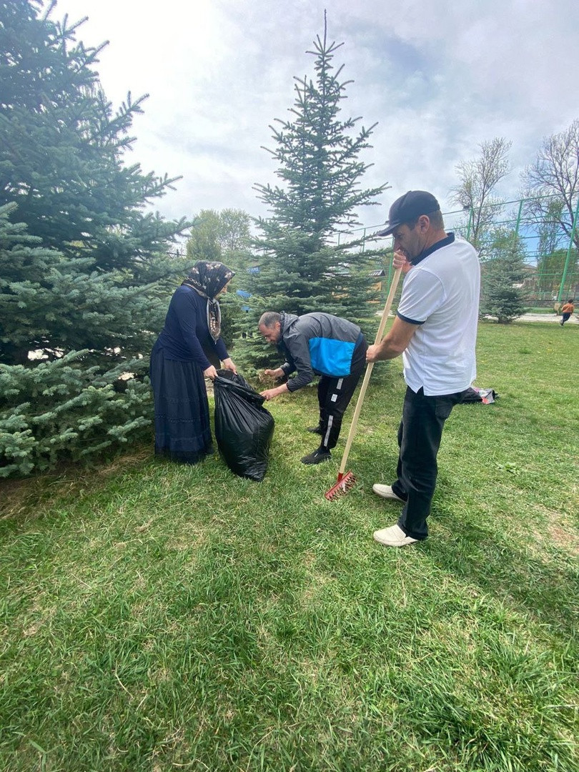 Сегодня по всей республике проводится экологический субботник и коллектив ГКУ РД УСЗН в МО « Левашинский район » вышел на уборку прилегающей территории и парка Победы . Эти территории традиционно закреплены за управлением соцзащиты и другими учреждениями района . Парк , стараниями Администрации и сотрудников госучреждений , стал излюбленным местом отдыха жителей всего района