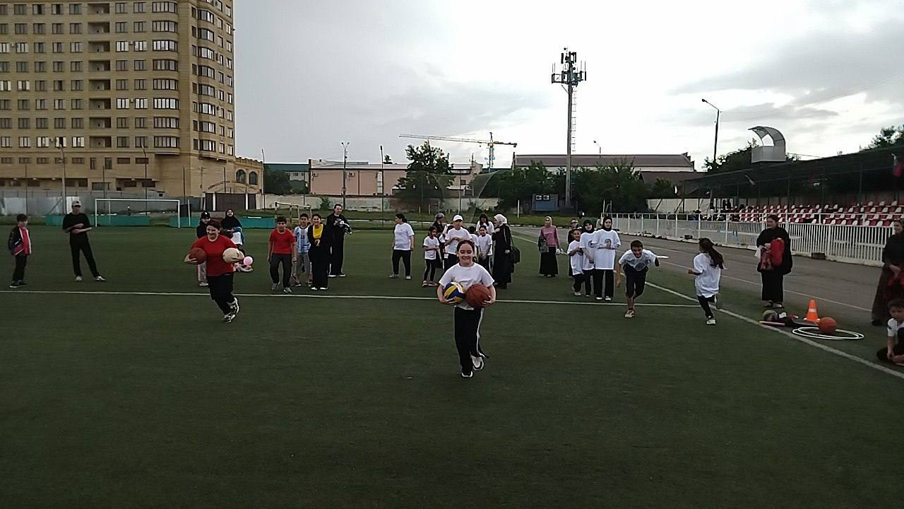 На городском стадионе имени А.С. Муртазалиева дети соревновались в прыжках в длину, дартсе, беге на различные дистанции и в эстафете.