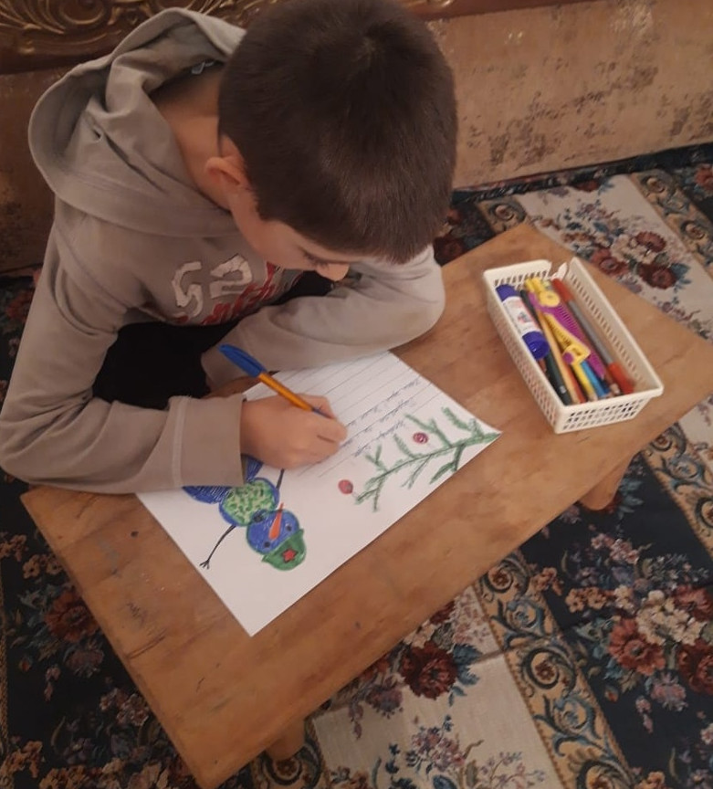 В преддверии Нового года в СРЦН среди подопечных была организованна и проведена акция "Фронтовая открытка", на которой несовершеннолетним было предложено нарисовать открытку с новогодним поздравлением военнослужащим, выполняющим боевые задачи. Подопечные с огромной радостью и интересом отнеслись к заданию, с удовольствием нарисовав рисунки и написав искренние и теплые поздравления для наших солдат.
