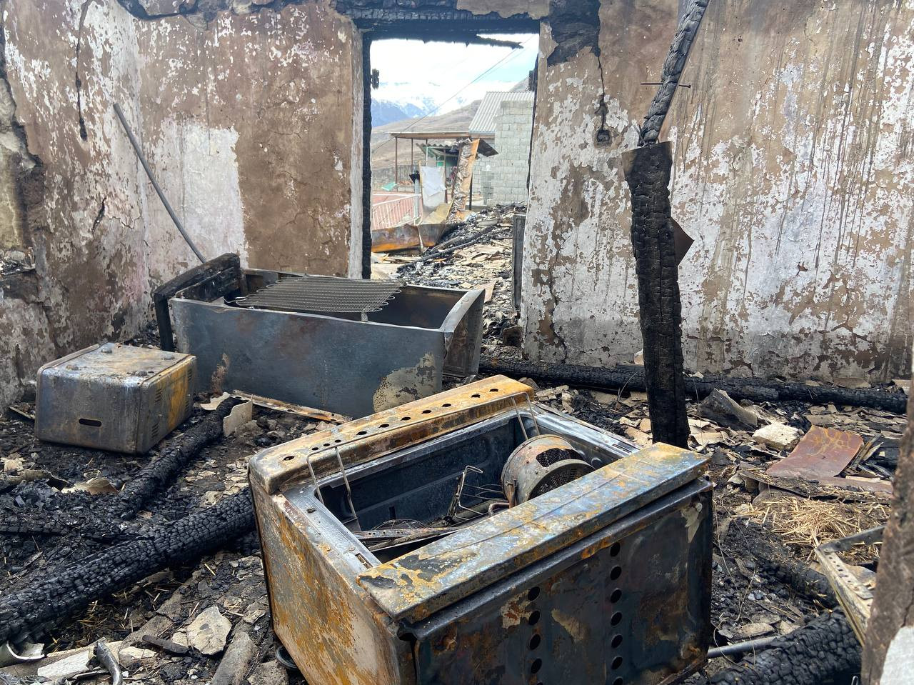 ?Хадижат, хозяйка дома, со слезами на глазах рассказала о случившемся горе. Был обычный день, мама вышла в магазин а в доме остались маленькие дети. Ничего не предвещало беды… Благо, соседка обратила внимание на то, что с близлежащего дома клубится едкий дым. Соседка кинулась в дом спасать малышей. Причина возгорания - старая электропроводка.Самое главное, что в этой стихии дети остались живы. Эта семья осталась практически без крова: обвалились потолки, сгорели деревянные окна, обуглились стены, черная копоть покрыла весь двор.