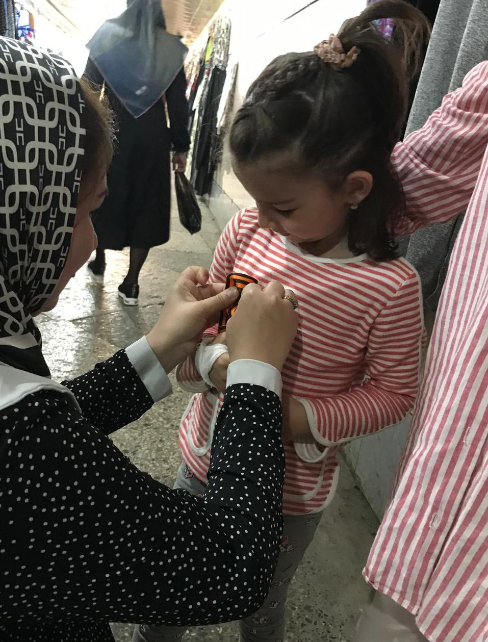 В рамках общественной патриотической акции раздали символический ленточки победы представителям школ, магазинов, в городском парке.