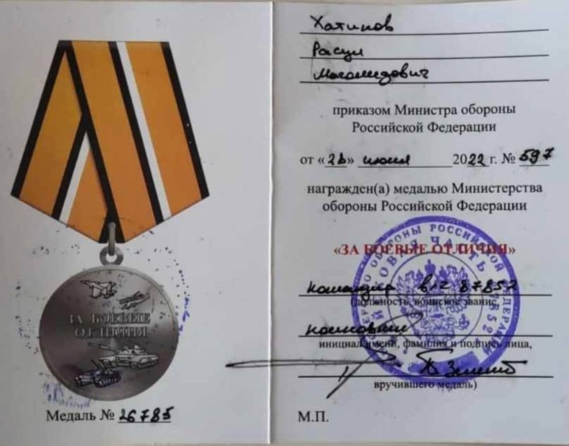 Так Указом Президента РФ за проявленное мужество и храбрость «Медалью за боевые отличия» награждён уроженец села Тануси Хунзахского района Хатипов Расул Магомедович.Выражаем благодарность Расулу и его родителям.Его отношение к службе и следование воинскому долгу - служат примером для каждого, кто сейчас защищает наши границы.